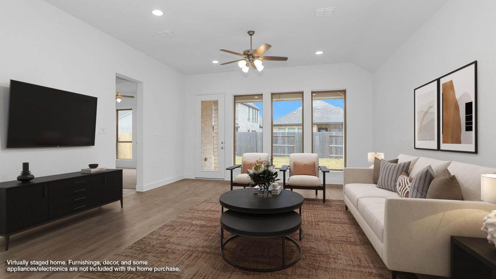 READY FOR MOVE-IN! Entry welcomes you with a 12-foot ceiling. Open kitchen offers a center island, 5-burner gas cooktop and spacious pantry. Dining area flows into open family room with wall of windows. Secluded primary suite includes primary bath with dual vanities, garden tub, separate glass-enclosed shower and a large walk-in closet. Abundant closet space in the secondary bedrooms. Extended covered backyard patio and 6-zone sprinkler system. Mud room off the two-car garage.