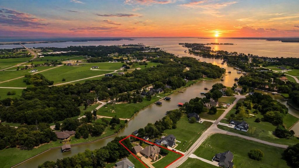 Welcome to lake living in The Shores on Richland Chambers Lake, where Hill Country charm meets comfort and functionality. Situated on a .523-acre canal-front lot with water views, this 5-bedroom, 3.5-bath home offers over 3,000 sq ft of inviting, open-concept living designed for relaxing weekends and effortless entertaining. Inside, you’ll find warm wood flooring, arched walkways, crown molding, and a light-filled living area with custom built-ins and backyard views. The kitchen is designed for gathering with granite countertops, a large island, walk-in pantry, breakfast bar, and a beverage station with wine fridge. A private office with French doors and multiple dining areas add flexibility. The spacious primary suite features a soaking tub, separate walk-in shower with body sprays, dual vanities, and generous storage. Additional bedrooms include a Jack-and-Jill layout, ideal for family or guests. Outdoors, enjoy peaceful mornings, sunset evenings, and easy access to the water with a covered patio, fire pit, and mosquito misting system. The property includes a private boathouse with lift, plus Boat Slip #19 in The Shores marina—giving you the best of both worlds with private dock access and quick entry to open water. A detached structure adds versatility with a 625 sq ft workshop below and a 625 sq ft efficiency guest apartment above, complete with kitchenette—perfect for guests, extended stays, or potential income. Additional features include a whole-home water filtration system and tankless water heater. Located in a gated community with marina, pool, clubhouse, fitness center, and more—this property is your gateway to enjoying the best of Richland Chambers Lake.