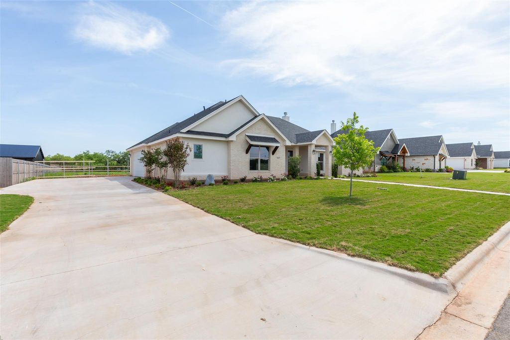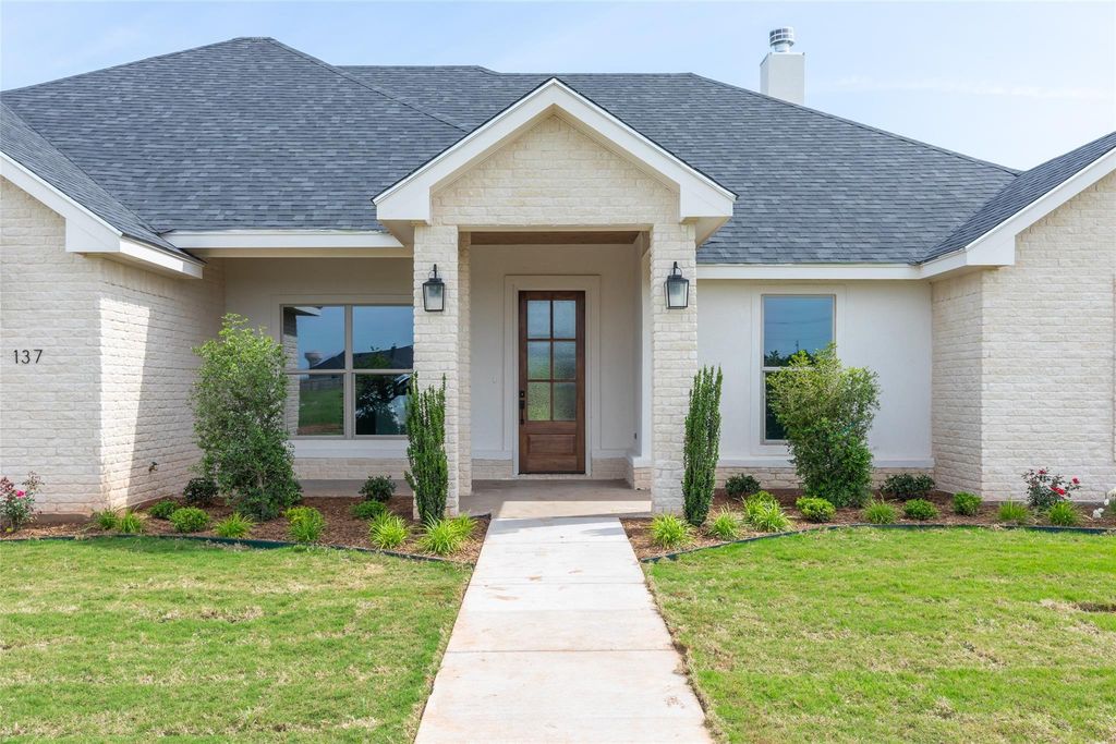Platinum Builder's lives up to the name in Abilene's new exclusive Headwater Estates. Panoramic views & sprawling lot surround this modern craftsman home. Open concept floorplan provides functionality & impeccable styling, crown molding & focal point fireplace for warmth & ambiance. Chef's kitchen provides ample hand crafted cabinetry & convenient prep island that doubles as breakfast bar for casual seating. Walk-in pantry for food, serving ware & kitchen appliance storage. Spacious dining is surrounded by natural light & offers convenient patio access. Split design creates master privacy & boasts en suite bath with dual sinks & vanities, oversized walk-in shower & relaxation tub, perfect spot to end the day. Spacious secondary bedrooms share well equipped full bath! Guest or inlaw suite has private full bath! Side entry garage & great covered patio, the ideal spot to cookout with friends & family plus overlooks huge backyard with full privacy. Welcome HOME!