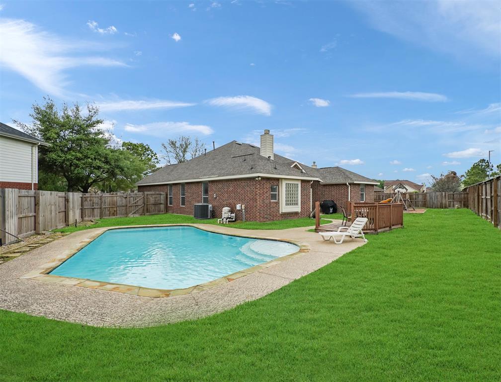 Eye-catching curb appeal and anchoring an oversized, premium cul-de-sac lot with NO BACK NEIGHBORS. Exceptional privacy in back yard for pool days with ample space for additional improvements. A lovely 20' long entryway leads into the heart of the home, where a modern split floorplan with an island kitchen opens to the expansive living area. In the kitchen, granite countertops, 42" cabinets, stainless appliances and a large bay window welcome in abundant natural light. Living area wired for sound. Tray ceiling and crown moulding in the primary bedroom located at the rear of the home, with French doors leading into the study just outside. Two separate walk-in closets and double vanity in the primary bathroom. Wood-look tile everywhere except bedrooms & bathrooms. Less than one year old roof! Less than one year old HVAC.
