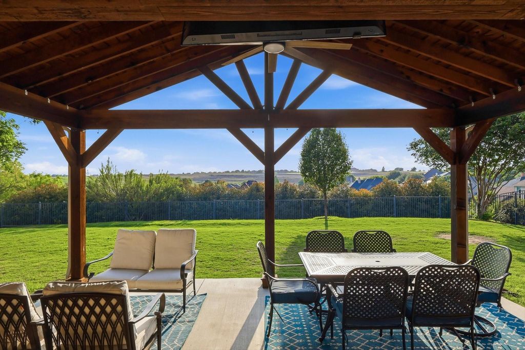 HILLTOP VIEWS! Huge covered patio with beautiful views. If you're tired of cookie cutter lots this just over a quarter acre yard is the one for you. Sellers say the stars at night are amazing. In addition to the patio the covered front porch is just as nice! For those that like relaxing outside in the shade this is the perfect home. Inside features plank tile floors throughout much of the home. Big open kitchen. 4 bedrooms plus an office. The HOA also includes access to a community pool. Eagle Mountain Park is a short drive away and features some of the best hiking in North Texas.