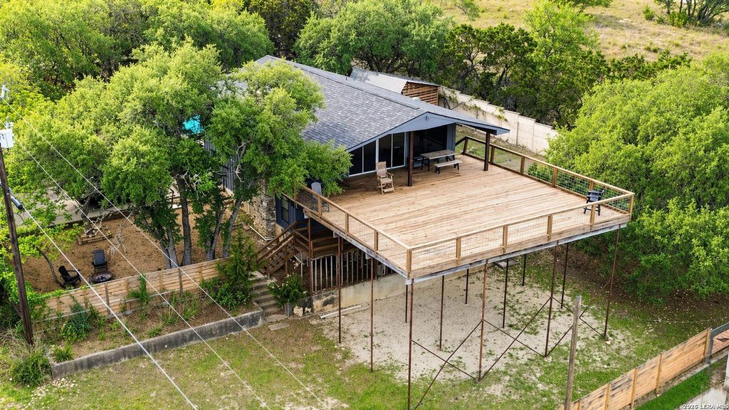 Experience the pinnacle of lakeside living in this modern masterpiece overlooking Canyon Lake. Offering an airy, open concept floor plan, this home seamlessly blends warm wood tones with contemporary design. The heart of the home is the upper-level Great Room, where a soaring wall of glass offers unparalleled, panoramic views of the water. The gourmet kitchen is a chef's dream, featuring a massive island with bar seating, double ovens, a pot filler, and premium stainless steel appliances. Retreat to the primary suite, a private sanctuary with pool views and a spa-like ensuite featuring a custom walk-in tiled shower and dual vanities. The lower level serves as a versatile secondary living space, perfect for an expansive media room or guest quarters, offering two large bedrooms and a custom bunk room. Outside, the property is an entertainer's paradise: relax on the massive covered deck with a custom swing, take a dip in the private pool, or host from the oversized outdoor bar. Located ju
