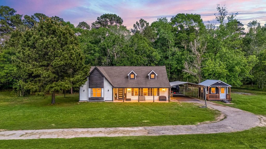 Welcome to your private country retreat on 5 unrestricted acres updated and move-in ready. This 3–4 bedroom, 2 bath farmhouse features a new roof and HVAC (2020), plus 2024 updates including flooring, kitchen and bath upgrades, and fresh paint. Inside offers an oversized living room with high ceilings, spacious dining area, and a versatile loft that can serve as a 4th bedroom, office, or flex space. The kitchen includes a high-end stove/oven with built-in air fryer, and the primary suite features a massive custom closet. The fully fenced and cross-fenced property includes scattered trees and a stocked pond. Additional features include a barn with water and electricity, she-shed, tiny house, workshop, and RV hookup—ideal for guests, hobbies, or multi-generational living. Peaceful country living with space, flexibility, and modern updates. Schedule your private showing TODAY!