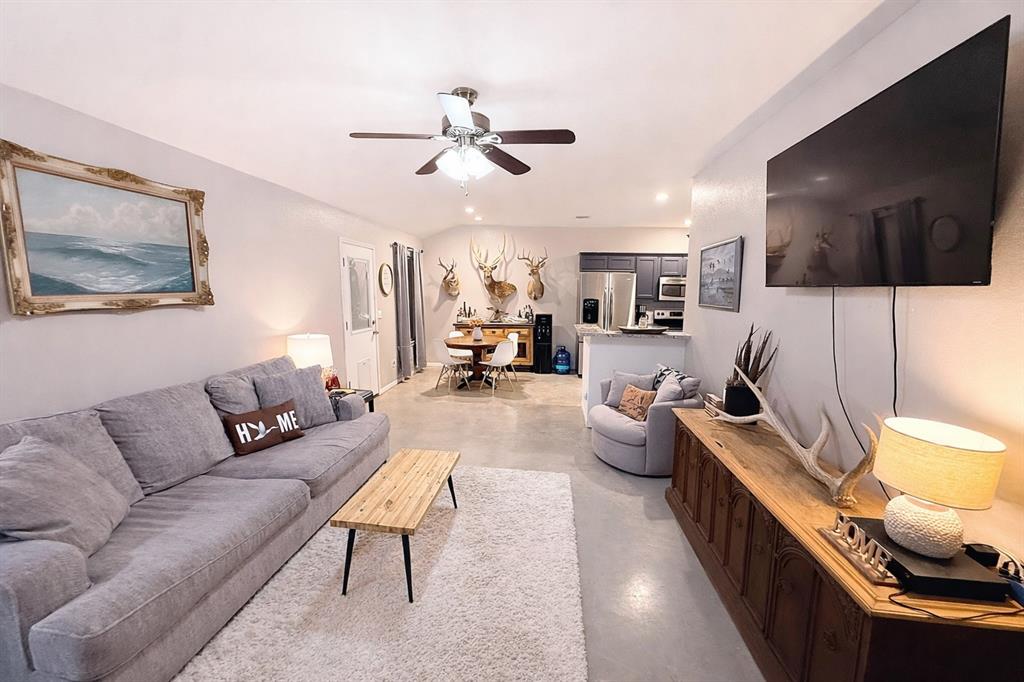 Beautifully maintained 3-bedroom, 2-bath home built in 2015, ideally located just minutes from town, top-rated schools, shopping, and dining. This inviting home features an open-concept living and dining area that flows seamlessly into a stylish galley kitchen equipped with stainless steel appliances. Durable stained concrete floors run throughout, offering both a modern look and easy maintenance. Step outside to a spacious, privacy-fenced backyard—perfect for relaxing, entertaining, or enjoying time with family and pets. Nestled on a quiet street, this home offers both comfort and convenience. Bonus: Oversized stainless steel washer and dryer convey with the property.