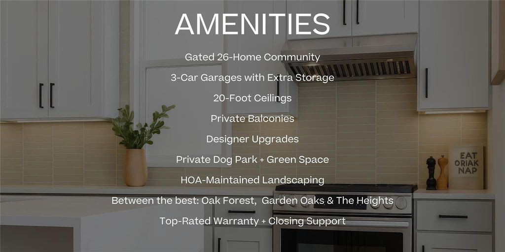 Experience life at Thornton Oaks, a gated community ideally located between Oak Forest, Garden Oaks, and The Heights. This flexible floor plan offers 3 bedrooms with the potential for up to 5, including a convenient first-floor guest suite. Enjoy soaring 20-foot ceilings in the main living area, a light-filled open layout, and a designer kitchen with an oversized island and stylish cabinetry - perfect for entertaining or everyday living plus a balcony. The spacious primary suite features a spa-inspired bath and a large walk-in closet for ultimate comfort. A 3-car garage provides ample parking and storage, while community amenities like a private dog park and HOA-maintained green space enhance the lifestyle. With close proximity to top dining, shopping, and major freeways, Thornton Oaks offers modern living in one of Houston’s most connected and desirable areas.