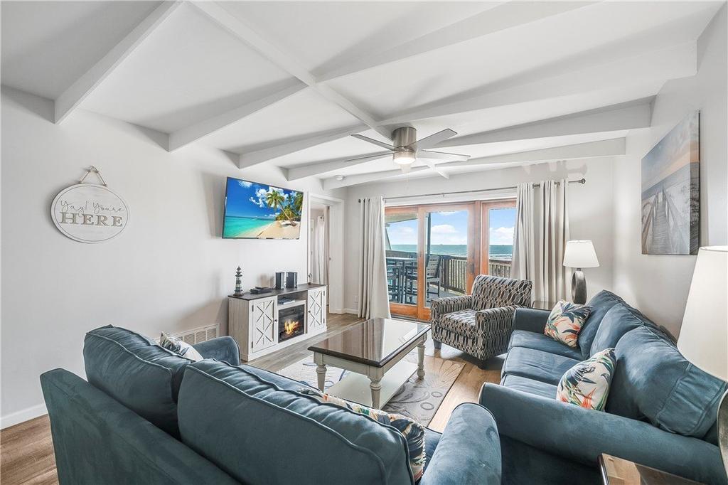 This top-floor, fully furnished condo offers beautiful water views and a proven track record for strong rental income, providing a turnkey condo for the new owner. The property features two bedrooms, two bathrooms, an oversized kitchen, and vinyl plank flooring throughout. Recent upgrades since 2022 include a tankless hot water heater and various interior updates. This complex offers the largest balconies for your outdoor enjoyment. Polywood-style furniture on the balcony and front entrance. One covered parking spot. Two pools with one heated during the Winter, spa, Pickleball and more. The game room/conference room is a great addition to this complex. Located on the outskirts of Port Aransas, but Corpus Christi is an easy drive for more fun options or the airport.