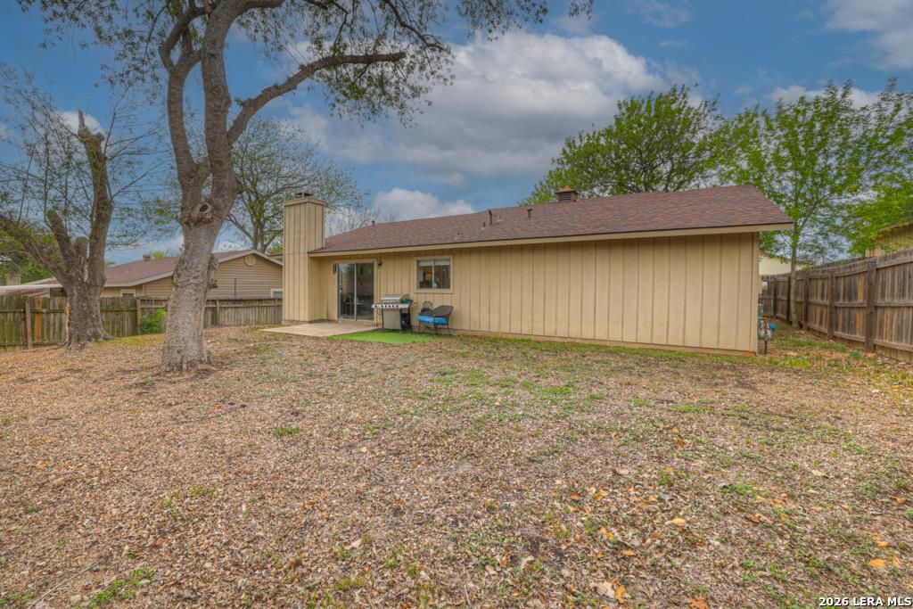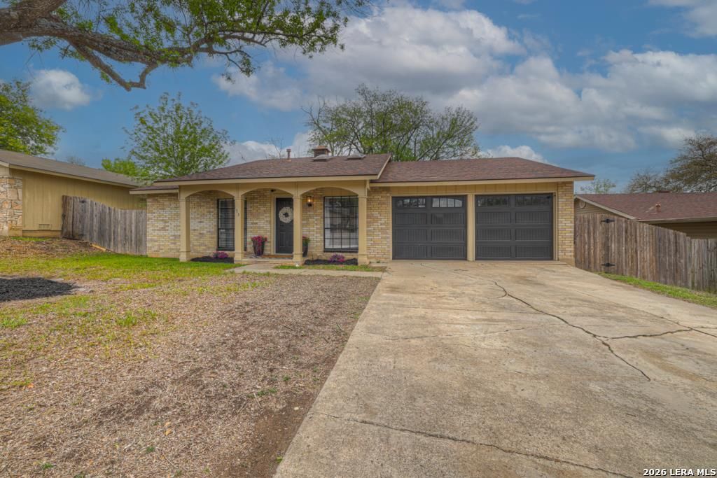 Step into this light-filled one-story home offering 3 bedrooms, 2 bathrooms, and 1,365 square feet of inviting living space. A welcoming formal living and dining area greets you at the entry, with two secondary bedrooms thoughtfully positioned at the front of the home, ideal for guests, family, or a home office. Natural light pours through the home, leading you to the heart of the space where a spacious kitchen flows seamlessly into a cozy den featuring a charming wood-burning fireplace. The kitchen features stainless steel appliances and a gas stove less than a year old, perfect for both everyday living and casual entertaining. Privately tucked at the back of the home, the primary suite provides a peaceful retreat. Durable vinyl laminate flooring enhances the main living areas, while soft carpet adds comfort in the bedrooms. Ceiling fans throughout add to the home's year-round comfort. Step outside through the sliding glass door to a large backyard ready for gatherings, grilling, or u