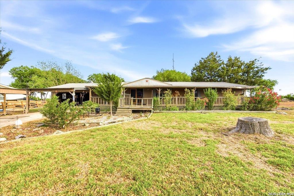 Welcome to 176 Golden Meadow! This home sits just minutes from the city and on a beautiful 1.011 acre lot! This is also the LOWEST priced home with land in this subdivision in the last 6 years! Settled down the road from Randolph AFB this property offers quick access to Loop 1604, I35 and I10. This is the perfect blend of country living and if you want to enjoy the city its just a quick drive down the road to San Antonio or New Braunfels! The backyard is completely fenced in with a covered patio. Interior layout is an open concept and split floor plan with plenty of space for entertaining or play time for your children. Home is being sold AS-IS.