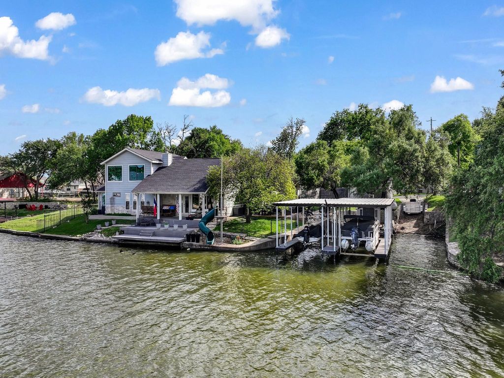 Peaceful waterfront retreat at Bee Creek on Lake Granbury, set on two lots with 150 feet of waterfront, stunning water views from all bedrooms and the living area, and plenty of space between neighbors for added privacy. This 3-bedroom, 3-bath property offers a spacious outdoor living area, fire pit, private boat ramp, two-stall boat dock, room for two jet skis, a triple deck off the back porch for easy access to the water, and a swing off the boat dock. The kitchen features a commercial refrigerator and freezer. The separate mother-in-law quarters include a bedroom, bathroom, and kitchenette. This is a rare opportunity to enjoy waterfront living with space, privacy, and exceptional views.