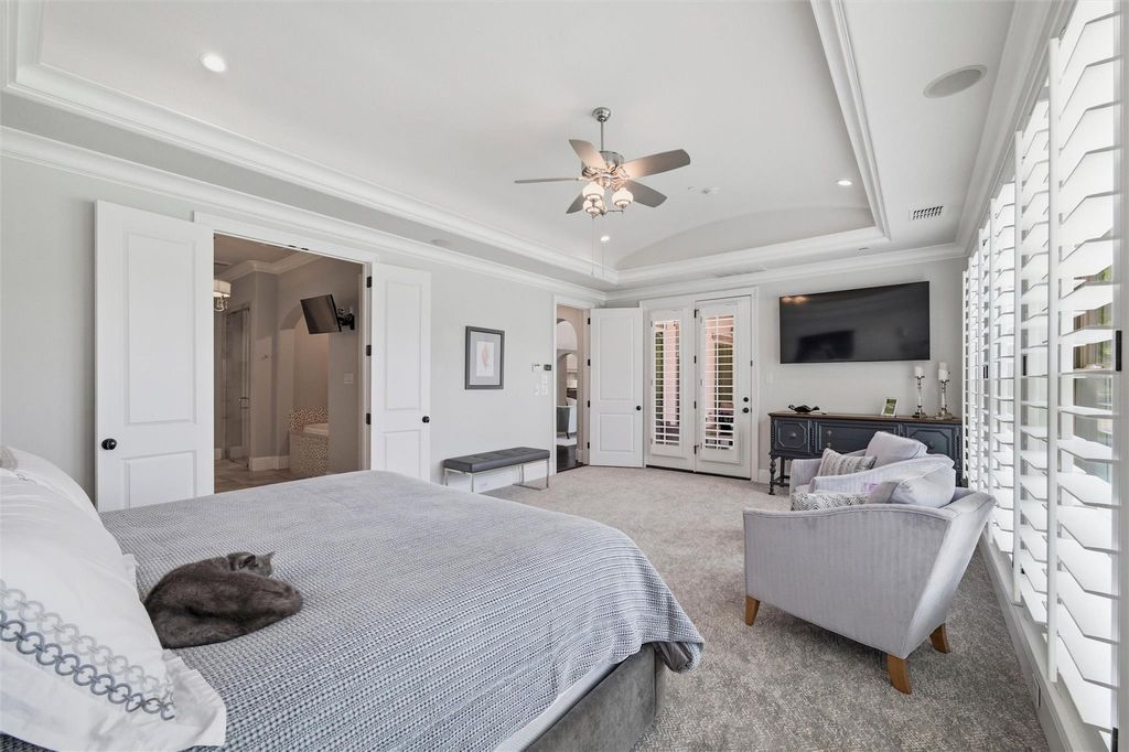 Discover the epitome of luxury in this rare 4-bedroom, 6-bathroom estate nestled in the exclusive gated community of The Lakes of Las Colinas. This stunning home backs directly onto picturesque Lake Carolyn, offering serene water views that define effortless elegance. Step through the enchanting courtyard and enter a private oasis designed for sophisticated living and effortless entertaining. Built with a custom floor plan and fully renovated, the residence showcases premium upgrades throughout. The heart of the home is the gourmet chef’s kitchen, featuring exquisite countertops, top-of-the-line Viking range, oversized fridge and freezer, and convenient access to the butler’s pantry. Seamless flow connects the open-concept living, family, and dining areas, all framed by breathtaking lake views—ideal for hosting memorable gatherings or quiet evenings by the water. Retreat to the expansive primary suite, complete with its own stunning water views and a spa-inspired bathroom that invites pure relaxation. Upstairs continues to impress with two generous secondary bedrooms sharing a Jack-and-Jill bath, a dedicated media room perfect for movie nights, and a guest bedroom with its own private full bath. Recent changes include a substantial pool renovation, new 3 stage HVAC units, as well as numerous internal updates. This exceptional property blends timeless architecture, modern luxury, and resort-style living in one of Las Colinas’ most sought-after enclaves. Experience the ultimate waterfront lifestyle where every detail has been thoughtfully curated for comfort and distinction.