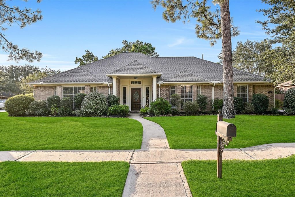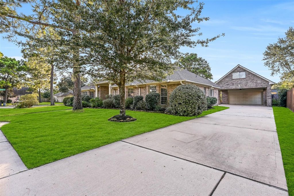 Beautiful 4-5 bedroom, 3 bath single story home on a sprawling corner lot in highly desired Friendswood ISD! Conveniently located in the Forest of Friendswood with quick access to I-45, NASA, Downtown Houston & Galveston, this open-concept home is well-suited for entertaining with a spacious family room, an elegant formal dining, & an island kitchen complete with a gas cooktop, a breakfast bar, abundant cabinetry, & a sunlit breakfast room. The split floorplan features a massive primary suite with sitting area, an updated bath with dual sinks, a soaking tub, a seamless glass shower, & a huge walk-in closet. You'll also find spacious secondary bedrooms with generous closets and updated baths, plus a private study or 5th bedroom. Outside features a huge corner lot and backyard with an entertainment patio & pergola, a stone gas fire-pit, a freestanding hot tub, detached 4-car tandem garage, porte cochere, plus a game room/craft room with AC and additional storage space upstairs!