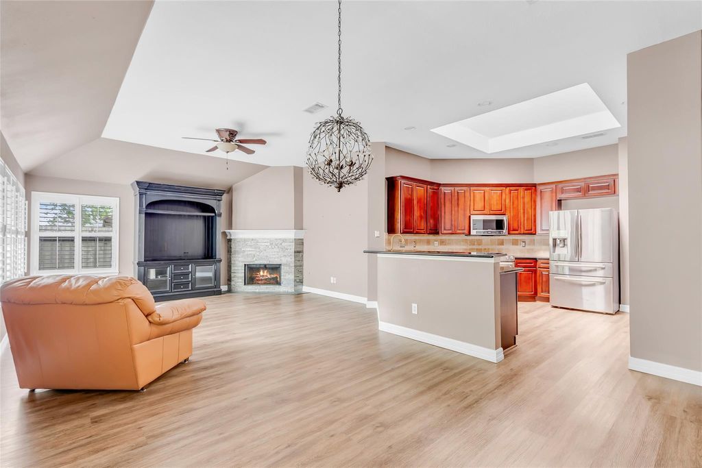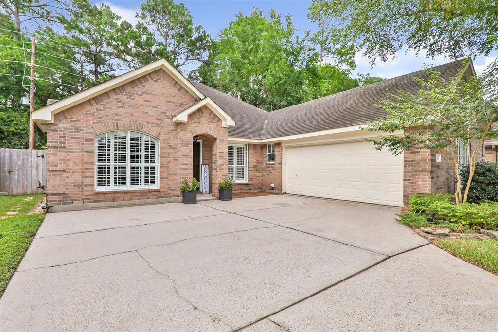 BEAUTIFULLY UPDATED four-bedroom, two-bath home offering 2,147 SQ FT of single-story living in the MASTER-PLANNED WINDROSE COMMUNITY, zoned to HIGHLY ACCLAIMED KLEIN ISD SCHOOLS, including highly acclaimed Benignus Elementary School! KLEIN OAK HIGH SCHOOL—AN IB WORLD SCHOOL offering the prestigious INTERNATIONAL BACCALAUREATE PROGRAM at no additional cost. HIGH CEILINGS, TWO SPACIOUS LIVING AREAS & OPEN-CONCEPT KITCHEN includes a skylight, breakfast bar, refrigerator, and a BRAND-NEW DISHWASHER. PLANTATION SHUTTERS throughout add elegance and energy efficiency. PRIMARY SUITE offers a soaking tub, separate shower, & generous walk-in closet. Step outside to enjoy a COVERED PORCH, a FULLY FENCED BACKYARD, & SPRINKLER SYSTEM. Windrose offers TRAILS, LAKES, PLAYGROUNDS, POOLS, TENNIS COURTS, & CHAMPIONSHIP 18-HOLE WINDROSE GOLF CLUB. EASY ACCESS TO GRAND PARKWAY AND I-45, & shopping/dining nearby in THE WOODLANDS. Best of all, it has NEVER FLOODED, offering lasting peace of mind.
