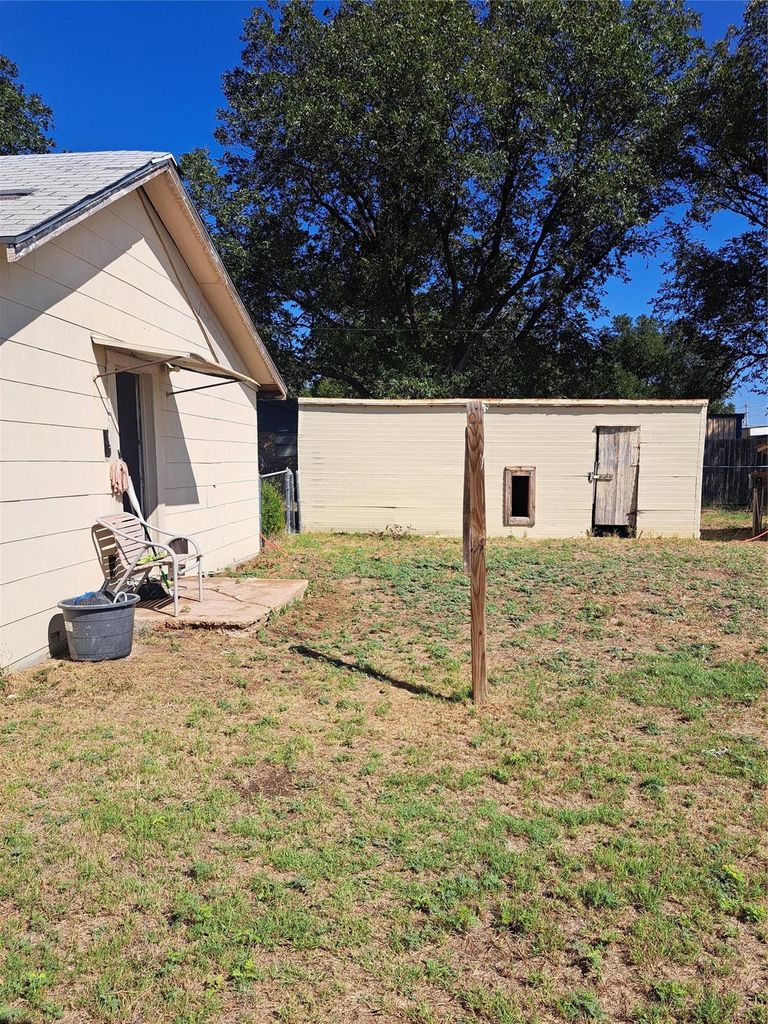 THIS HOME IS LOCATED CLOSE TO DOWNTOWN HASKELL WALKING DISTANCE. LOCATED ON AN INTERIOR LOT THIS HOME HAS A 2 BEDROOM AND 1 BATH WITH AN ELECTRIC TANKLESS WATER HEATER. NO GAS IS AVAILABLE TO THE HOME METER IS NOT ATTACHED TO THE HOME PIPE LINES. HOME IS ON CITY WATER BUT DOES HAVE A WELL AND A COUPLE OUTBUILDINGS PLUS A STORM SHELTER.