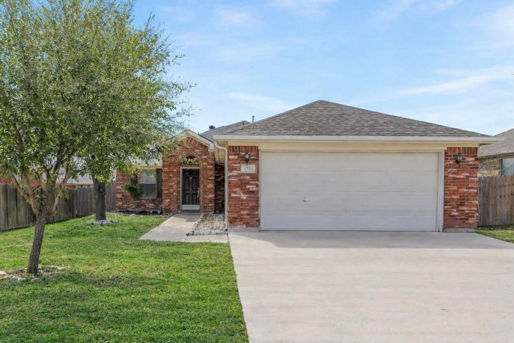This beautiful single story home the perfect layout for those who love open space and natural light! Enter through the front door and to be met with warm neutrals, great lighting, and gorgeous wood floors! The bright kitchen is open to the large dining space and the living room, featuring a cozy gas fireplace and plenty of room for any furniture arrangement. The primary bedroom has a beautiful vaulted ceiling, an ensuite bathroom with separate shower, garden tub, and large walk in closet. The other two bedrooms are side by side nearby the additional full bath for full convenience and a smart layout. Out back is a world of potential with a large bricked patio and a great amount of yard space! New roof and gutters just replaced in 2025!