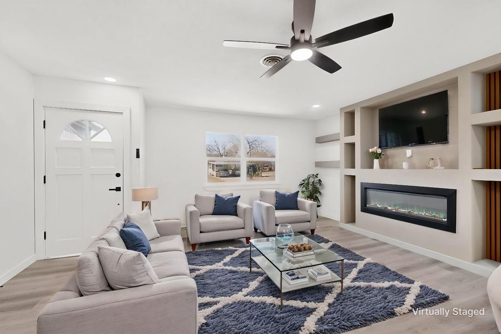Beautifully remodeled 4-bedroom, 2.5-bath home in Mesquite with convenient access to Interstate 635 and Interstate 30, making commuting, shopping, and dining easily accessible. Step inside to bright, open living spaces filled with abundant natural light. The inviting living room features a decorative fireplace that creates the perfect setting for cozy evenings or gathering with friends and family. The updated kitchen showcases sleek quartz countertops, modern finishes, and ample space for cooking and gathering. Bathrooms have been tastefully renovated with elegant porcelain tile, and contemporary light fixtures throughout add a fresh, stylish touch. With four spacious bedrooms and thoughtful updates throughout, this move-in-ready home offers comfort, functionality, and modern design in a desirable location. Schedule your showing today.