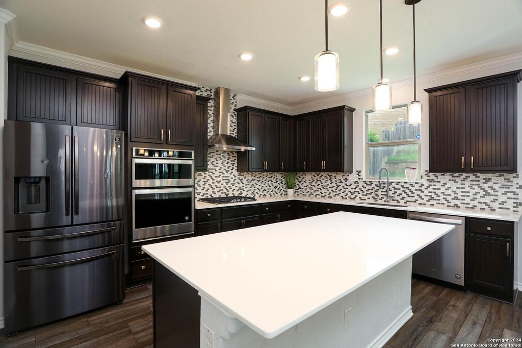 Immaculately kept 2021 KB Home. Situated in a quiet cul-de-sac with much privacy due to the quarry, meaning no back neighbors! This home offers an open layout floor plan, well-appointed & upgraded chef's kitchen with ss appliances, an oversize island, and plenty of cabintry for storage. With convenience in mind, there is a half bath off the kitchen. Upon entering the second floor, you are greeted by an inviting and versatile loft. All bedrooms upstairs along with a generously sized second full bathroom & walk in laundry room. The light and bright ambiance of the primary will not go unnoticed, equip with his and hers closets, glass shower & garden tub overlooking the backyard. Appliances stay as well as the washer & dryer if requested. Small community not far from hwy 1604. Close to shopping and restaurants. Enjoy old town Helotes just minutes or take a quiet drive and enjoy the gorgeous views of the Hill Country!