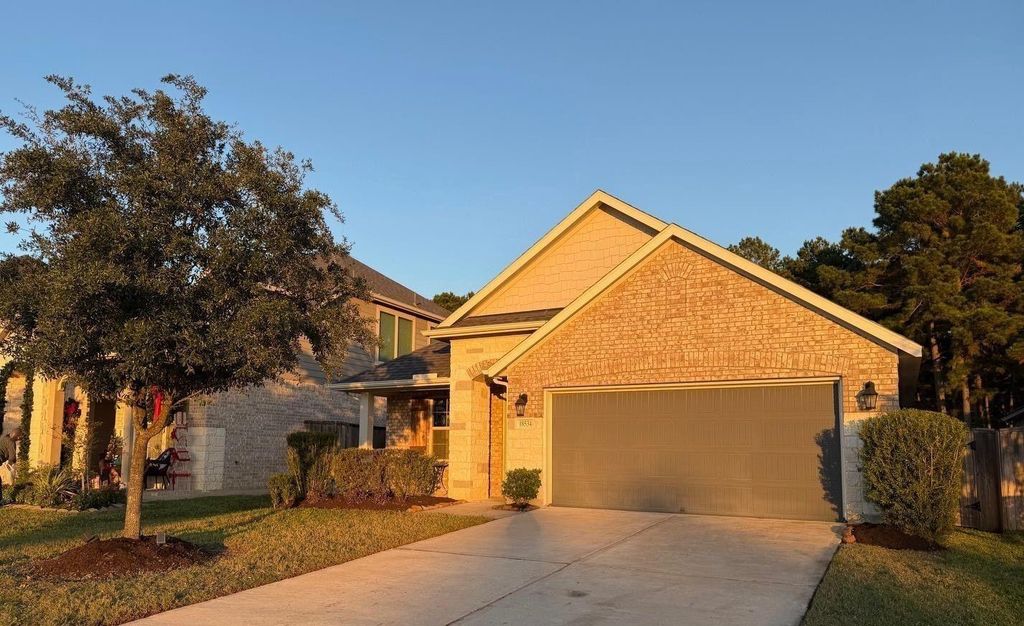 This beautifully maintained single-story home built in 2019 offers 3 bedrooms and 2 bathrooms with no back neighbors, backing to mature trees that provide privacy and tranquil, picturesque views. The open-concept interior showcases high ceilings, tile flooring, and a stylish kitchen featuring granite countertops, glass tile backsplash, modern pendant lighting, and a large island perfect for entertaining and everyday living. The primary suite serves as a peaceful retreat, while the secondary bedrooms are thoughtfully positioned for comfort and privacy. Enjoy outdoor living on the covered back patio overlooking serene, tree-lined views, or take advantage of the neighborhood’s scenic lakes and front pond with fountain. Additional highlights include a climate-controlled attic with spray foam insulation and a new AC evaporator coil replaced in 2025. Residents enjoy exceptional community amenities just steps away, along with walking and biking distance to highly rated Tomball ISD schools.