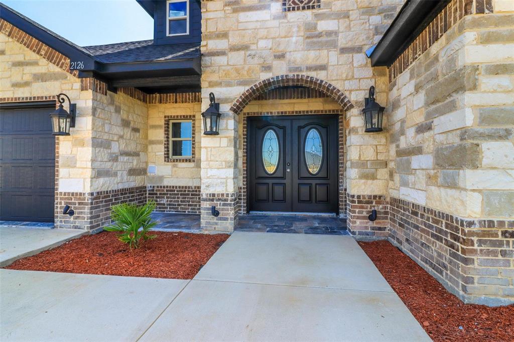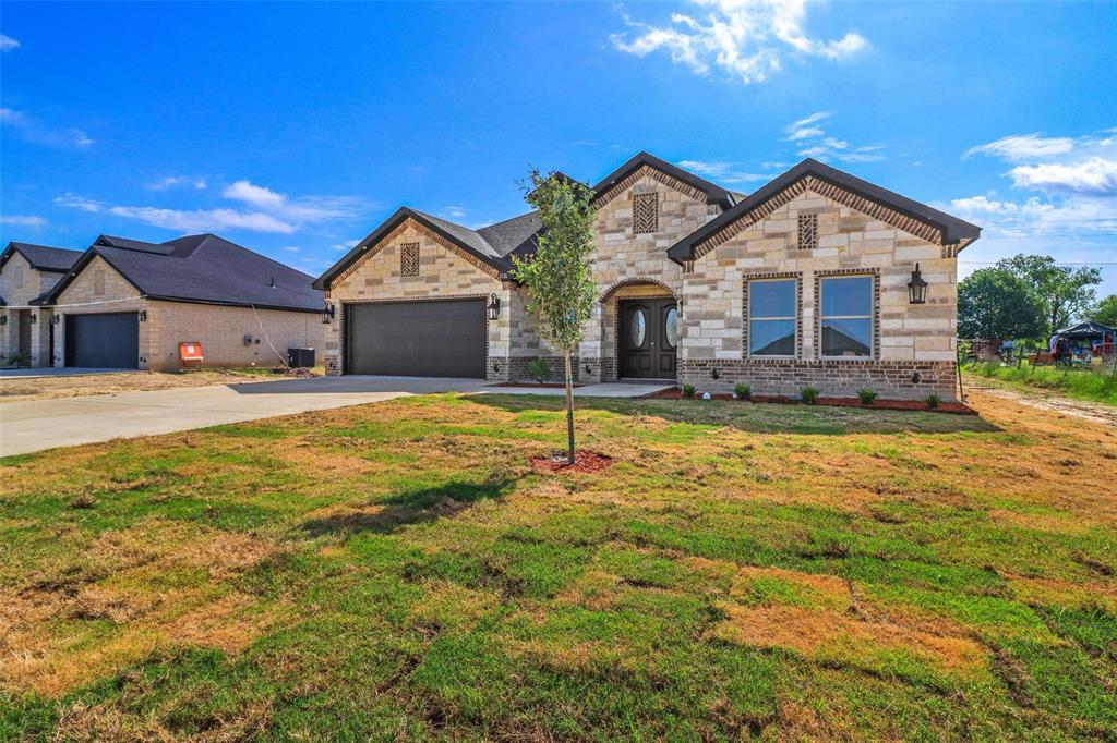 Beautiful 4 bedroom 3 full baths 2022 Custom Home sitting on almost half Acre! Features 1 master suite with custom ceiling design, jetted tub, with a walkin shower and closet. Also features an additional master bedroom with beautiful bathroom on the opposite side of the house. Porcelain floors through out the entire home including the garage, 9 foot ceilings and a driveway that can fit multiple cars. Open kitchen lay out with granite countertops, lots of cabinetry for storage and island overlooking the living areas. Bathrooms and kitchen feature a luxurious backsplash! Beautiful exterior lights and wonderful sunset views!