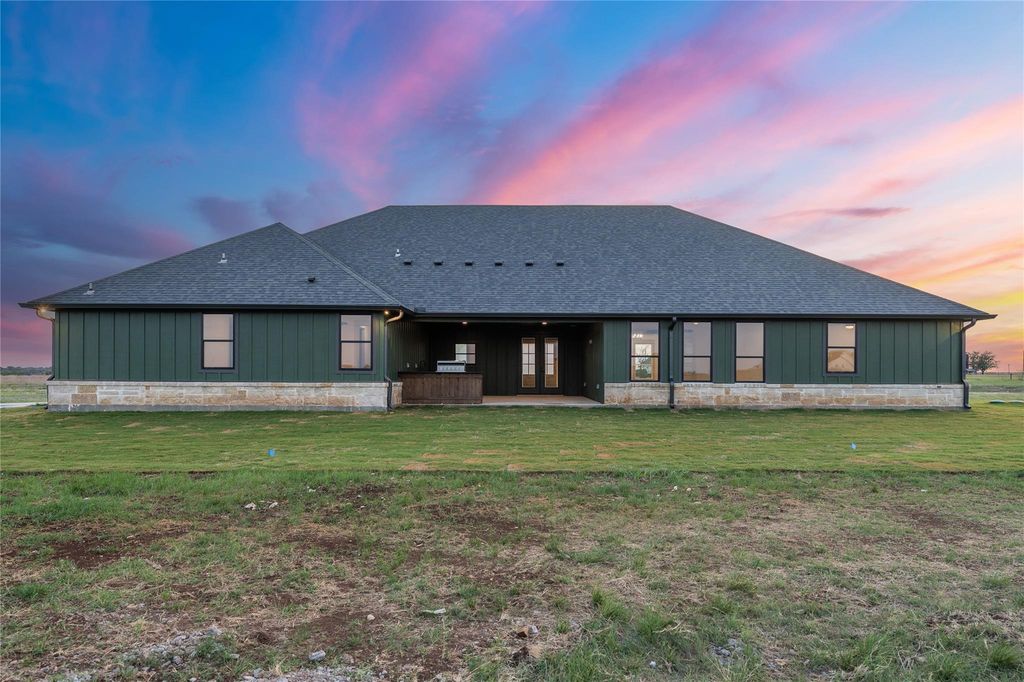 Step outside to a covered back patio, 3-car garage, and nearly 4 acres of wide-open Texas land—complete with rolling terrain, wildflowers, and unforgettable sunset views.