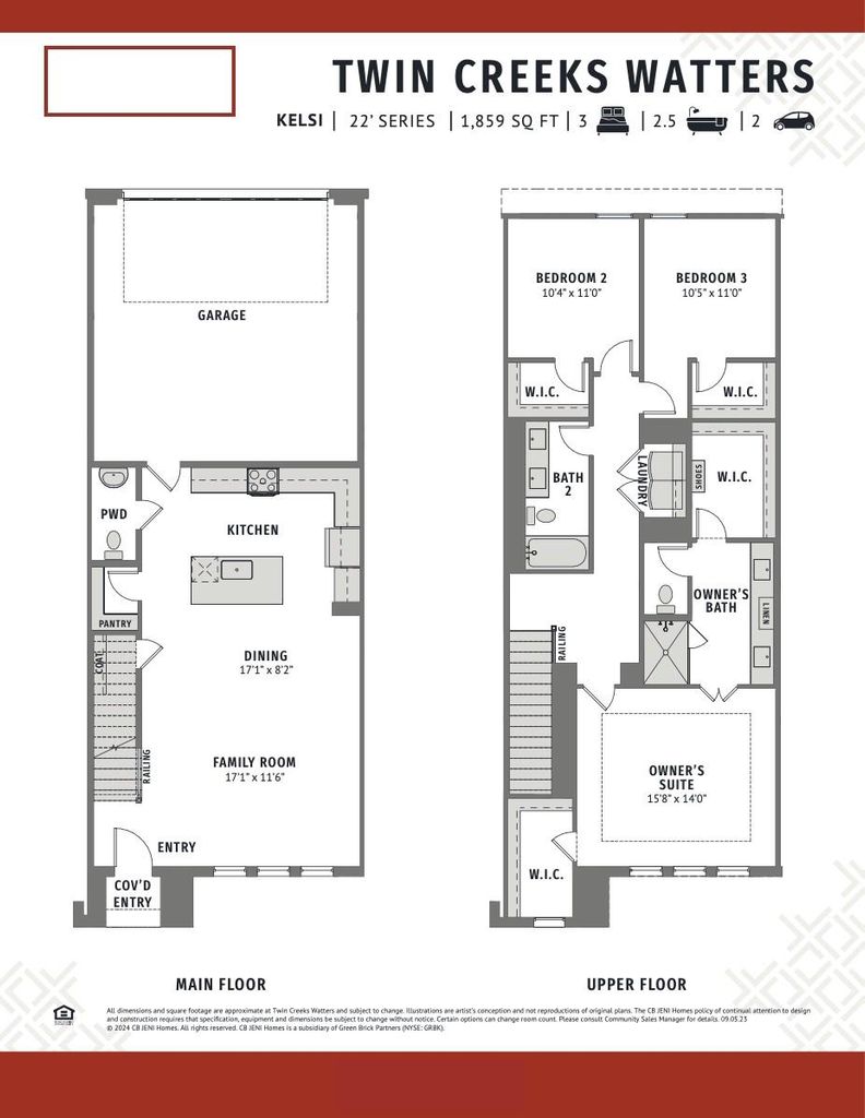 CB JENI HOMES KELSI floor plan. 3 bed, 2.5 bath, 1,859 sq ft luxury townhome in the highly desirable Allen area, within top-rated Allen ISD. Stunning ‘Cozy Natural’ design scheme with premium finishes throughout. Chef’s kitchen includes huge island with quartz countertops, site-finished cabinetry, and stainless steel appliances. Revwood flooring throughout entire first floor. SMART home with tankless water heater, gas heating, energy-efficient features, and 10-year HVAC parts warranty. Spacious owner’s suite plus walk-in closets in all 3 bedrooms. Located in Twin Creeks Watters, in the heart of exemplary schools, dining, shopping, lakes, parks, and acclaimed golf courses. Low-maintenance living with modern elegance. Ready NOW!