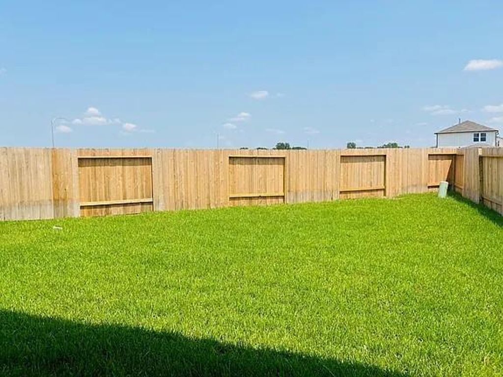 Quiet and new neighborhood. closet to 290, I 99 and shopping mall. The interior has luxury vinyl flooring throughout with carpet in the bedrooms only. The spacious eat-in kitchen features 42" cabinets with Satin Nickel hardware, granite countertops, and a deep under-mount stainless steel sink. Plus, upgraded Whirlpool Stainless Steel appliances w/ 5-burner gas range, convection oven with air fryer mode, Washer/Dryer, and refrigerator. The split floor plan has a secluded Owner's suite tucked away in the back & features a large walk-in shower with ceramic tile surrounds and a roomy walk-in closet. The home also has blinds, rear sod, four sides gutters & an irrigation system, and a covered patio on an oversized lot.