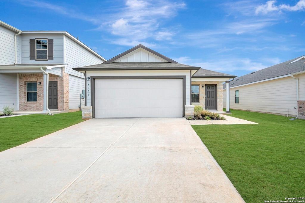 ***READY NOW*** Discover this beautiful new construction home at 4303 Carlotta Drive, New Braunfels, TX, built by M/I Homes. This 1,556 square foot house offers the perfect blend of comfort and functionality with its thoughtful design and quality craftsmanship. This charming home features the following: 3 bedrooms, including a downstairs owner's bedroom 2 bathrooms with elegant fixtures Open-concept living space that creates a seamless flow between kitchen, dining, and living areas 1,556 square foot layout that maximizes usable space New construction with modern finishes throughout The well-designed floorplan prioritizes both comfort and practicality, making this home ideal for everyday living and entertaining. The open-concept design allows for natural light to fill the main living areas while providing a spacious feel throughout. The downstairs owner's bedroom offers privacy and convenience, featuring an en-suite bathroom with quality fixtures. Two additional