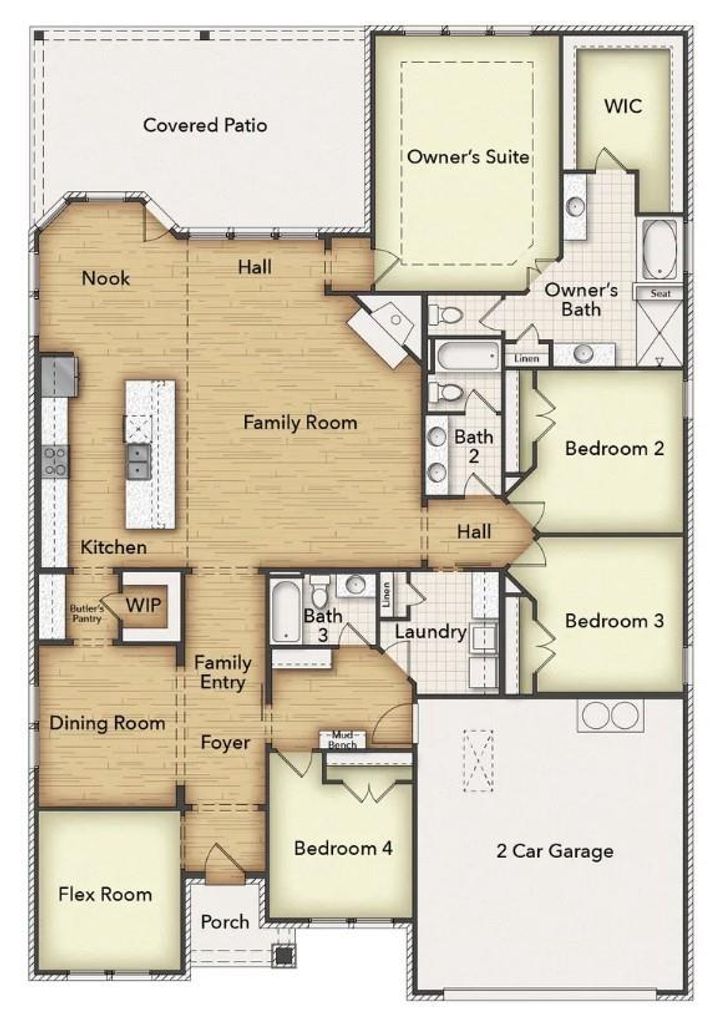 Estimated June 2026 completion! Ask us about our Trade In Trade Up program - we can buy your home! Step into the Bluebonnet by Riverside Homebuilders and embrace a lifestyle of comfort and functionality. With 4 bedrooms and 3 bathrooms sprawled over 2,686 square feet, this single-story haven offers ample space for every member of the family. As you enter through the inviting porch, the airy foyer sets the tone for the home's open layout. To the left, a flex room awaits, beckoning to be transformed into your ideal space—whether you envision a home office, gym or hobby room. Continue through the foyer to discover the heart of the home—a luminous dining room bathed in natural light. Beyond lies the main living area, a seamless fusion of the expansive kitchen, cozy family room featuring a fireplace and a charming nook adorned with picturesque windows. On the right wing of the home, privacy awaits with three traditional bedrooms and a breathtaking owner's suite. The owner's retreat boasts a spacious walk-in closet and a spa-like bathroom, offering a sanctuary for relaxation. Convenience is paramount with the laundry situated just off the bedrooms, accompanied by a mud bench near the garage entrance. To embrace the beautiful DFW weather without having to leave your home, step outside to the generous covered patio—where endless possibilities for outdoor enjoyment await. With its thoughtful design and inviting atmosphere, the Bluebonnet embodies the epitome of charming Texas living for all families alike.