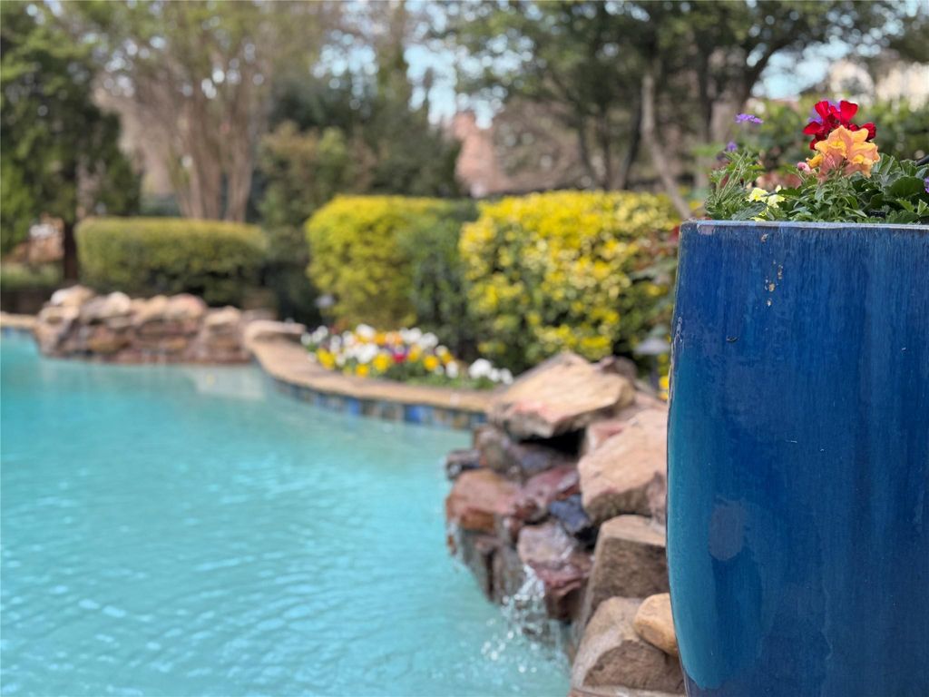 Beautifully updated 4 bedroom, 3 bath home in the highly sought after Woodlake Estates, offering a perfect blend of style, comfort, and location. Enjoy neighborhood access to North Shore Trails with miles of scenic bike and hike paths along Lake Grapevine, all just a short walk to Lakeside for dining, shopping, and entertainment. The thoughtfully designed floor plan includes a first floor bedroom and full bath, ideal for guests or a private home office. The spacious primary suite features dual walk-in closets and a fully renovated, spa-inspired bath complete with a soaking tub and separate glass-enclosed shower. All bathrooms have been beautifully updated, and the chef’s kitchen has been fully refreshed with custom cabinetry, premium stainless steel appliances, double ovens, an oversized island, a generous walk-in pantry, and a butler’s pantry, seamlessly open to the living room, breakfast area, and inviting sitting space. Step outside to a private backyard retreat with lush landscaping, thoughtfully designed for both relaxation and entertaining. Enjoy a heated saltwater pool with a built-in table and waterfall features, a covered patio with a built-in grill, refrigerator, and Big Green Egg, along with a gas fire pit and custom stone patio, all set against a peaceful creek backdrop with serene views. Additional highlights include updated windows, plantation shutters throughout, and a spacious 3-car garage complete with built-in cabinetry, workbenches and convenient above garage storage accessed through bedroom closet.