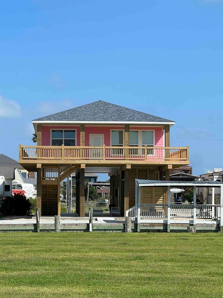 Welcome to your dream coastal retreat in the heart of Crystal Beach! Nestled along a serene canal with direct access to Galveston Bay, this beautifully maintained waterfront home offers the perfect blend of laid-back beach living and modern comfort. Whether you're looking for a full-time residence, a weekend getaway, or a prime vacation rental opportunity, this property delivers the ideal coastal lifestyle. With canal frontage right outside your door, you can launch your boat, kayak, or paddleboard in minutes and explore the waters of Galveston Bay, or cruise over to the Intracoastal Waterway with ease. Located just a short golf cart ride to the beach, this home gives you quick access to all the relaxation and recreation Crystal Beach has to offer. Inside, the home features an open concept living area with a modern kitchen and coastal charm throughout. Large windows let in natural light, while generous outdoor decks and patios provide plenty of room for entertaining.