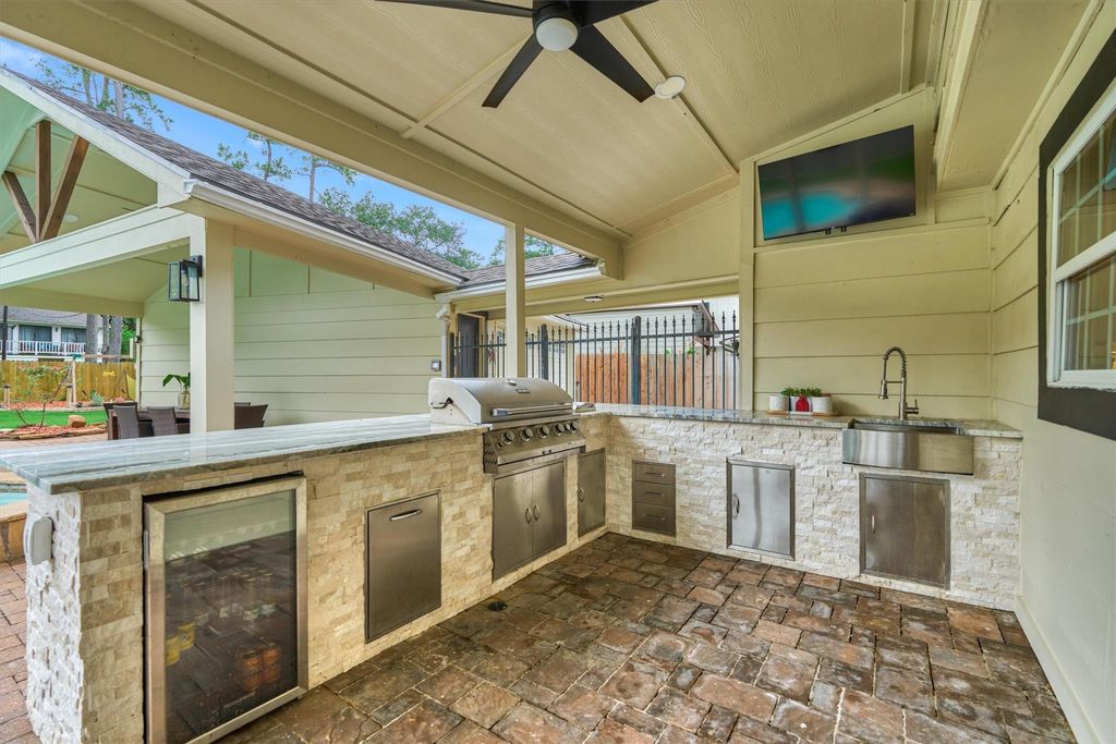 Totally Remodeled and rare find in The Northampton! Designed to blend the charm you love and modern features you need! Every detail delights from the custom double doors to the SPECTACULAR backyard! White washed brick wall, wood tile floors, on-trend lighting, neutral color Island with slide out drawers, double ovens, gas cooktop, and a walk-in pantry you have to see! Herringbone brick tile in mud room, pass-through wet bar w/granite counters and floating shelves. Generous sized bedrooms, primary retreat w/custom closet. Over $50K recently spent just on the backyard and pool !! Outdoor kitchen, 2 covered entertaining areas, playground, remodeled pool ! Mins. to restaurants, The Woodlands, Exxon, HP, and TX99. All 3 Klein schools within walking distance.