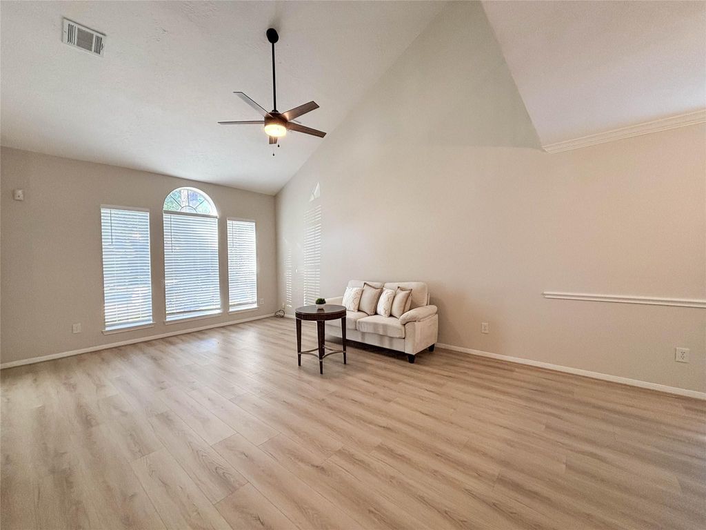 Gorgeous fully remodeled 2-story home. New roof! New paint interior and exterior! The newest built in the subdivision! Complete update features, high ceilings, and abundant natural light. Complete new kitchen appliance (New Oven, New Cook ranger, New Microwave, New dishwasher, New ventilation machine). The kitchen boasts new quartz counters, an island, glass tile backsplash, New stainless steel undermount sink, New goose neck faucet. New vanity cabinets for baths, quartz stone counters, standalone tubs, rain showers, vessel sinks, new faucets, LED vanity lights, and new tub and shower faucets. New landscaping, and partial fence replacement. Recent wood floors through out living, dining, den, and all upstairs bedrooms. Both baths have new tile floors. All light fixtures, inside and out, and blinds are new. Get ready to fall in love