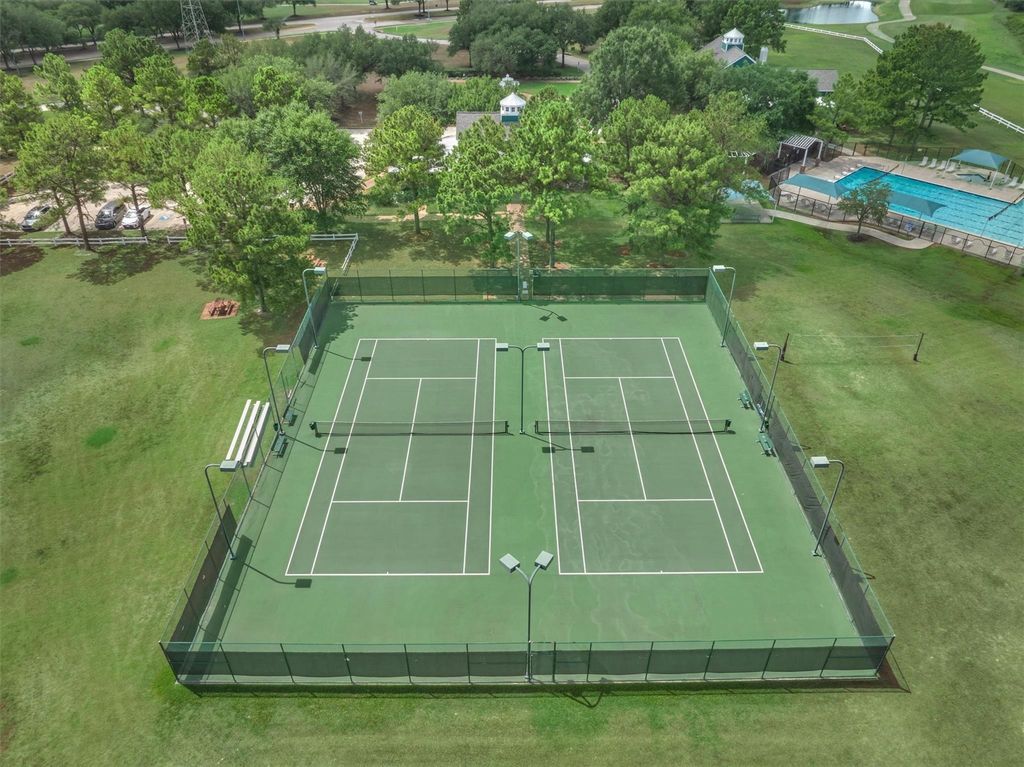 Nestled in the desirable Windrose Master Planned Community, this exquisite 4-bedroom, 2.5-bath, 2-story home features an additional study & offers luxurious resort-style living. The primary bedroom is conveniently located downstairs for easy access & privacy. The beautiful open kitchen flows into the spacious family room, creating an ideal space for entertaining. The study overlooks the 10th hole of Windrose Golf Course, providing a peaceful work environment. Residents enjoy fantastic amenities, including an 18-hole golf course, fishing ponds, playgrounds, pools, splash pads w/ water slides, walking trails, soccer field, & tennis court. The top-rated Klein ISD ensures excellent education. Inside, you’ll find high ceilings, custom flooring, a cozy fireplace, & elegant plantation shutters. A covered patio overlooks the meticulously landscaped yard w/ a sprinkler system, offering picturesque views of the pond & golf course steps away. Don’t miss this incredible opportunity!