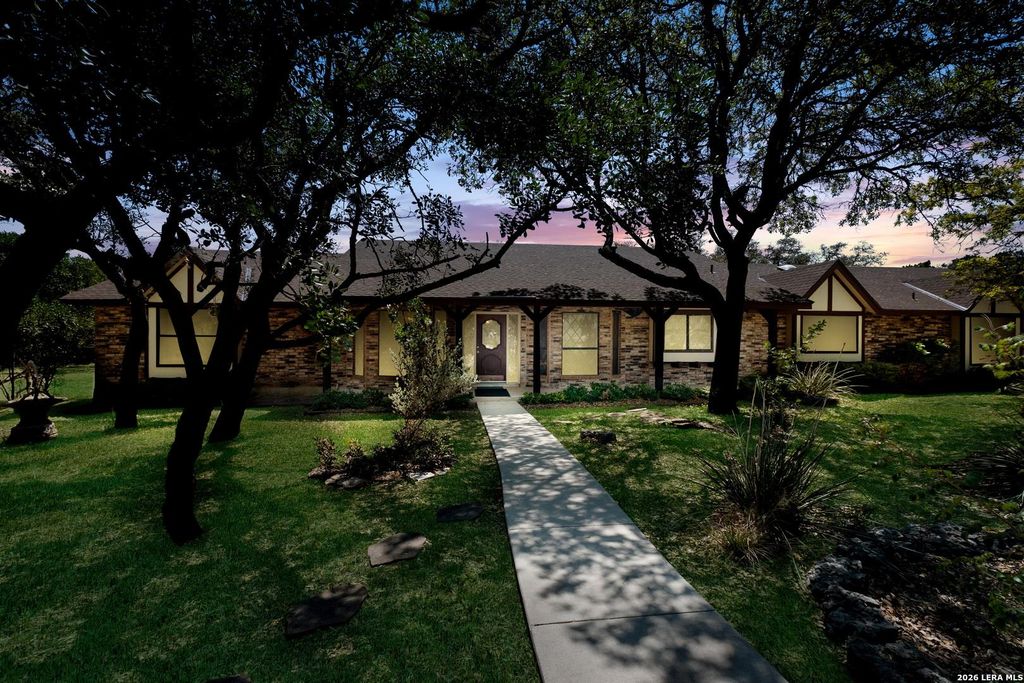 Nestled on 5.29 acres in the scenic Helotes Hill Country, this custom-built home offers space, privacy, and timeless character surrounded by mature oak trees. The home was built by the original owner Winston L. Wright, reflecting thoughtful craftsmanship and distinctive design elements that make it truly special. The interior of the home was thoughtfully designed by his wife Dorothy Wright, showcasing a well-preserved original design giving the property its unique character and warmth. A circular driveway welcomes you to the property and provides ample parking, while the expansive grounds offer a peaceful setting with plenty of room to enjoy the outdoors. The brick exterior and covered back patio create an inviting place to relax while taking in the natural surroundings. The entire property is fenced in with the front having an electric-remote gate made of stone/wrought iron. Inside, the home features generous living spaces, vaulted ceilings with exposed beams, custom woodwork, and