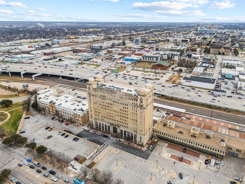 Penthouse-level corner residence inside one of Fort Worth’s most iconic historic landmarks. Located in Texas & Pacific Lofts, this rare 12th-floor unit is one of only two on the top floor offering south and west exposures with beautiful sunset skyline views. Completely remodeled in 2022, the home blends original exposed concrete with thoughtful modern updates throughout. Soaring ceilings, polished terrazzo floors, oversized windows with custom sound-reducing inserts, and a redesigned kitchen with quartz countertops and custom cabinetry that include in cabinet and under cabinet lighting create a refined yet industrial downtown retreat. Updated baths, a new HVAC system and ducts (2022), reverse osmosis drinking water system, and enhanced sound insulation in the primary bedroom (the unit’s only shared wall) provide comfort and privacy allowing you to enjoy downtown living without the downtown noise. Conveniently located near the elevator for easy access. Direct access to TRE and TEXRail provides convenient service to DFW Airport and downtown Dallas. An exceptional advantage for frequent travelers and commuters. Residents enjoy 24 7 concierge service, fitness center, resistance pool, owner’s lounge, multiple courtyards (including pet-friendly space), controlled-access parking with two unassigned spaces, exterior insurance, high-speed internet, cable, trash, sewer, and grounds maintenance. Within walking distance to Sundance Square, the Water Gardens, South Main, Magnolia, museums, dining, major event venues, and everything Downtown Fort Worth has to offer.