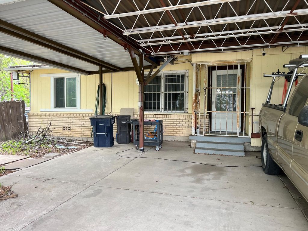 This home has lots of potential to be great rehab or investment for rental. Located one block from Texas Wesleyan University. Home has great bones and just needs to be updated. Two bedrooms with double closets in each, living room with built in cabinets, second living or TV room, Galley kitchen with gas stove and comes with refrigerator, and washer dryer. All the contents of the home convey. Backyard has covered awning, three sheds, large two story outbuilding or workshop with electricity and the upstairs two rooms that could be office or potentially additional living space. Double carport in front with electric security gate. All contents will convey and nothing will be removed or repaired by seller. Lots of good garage or estate sale items. Have your agent read private remarks prior to showing.