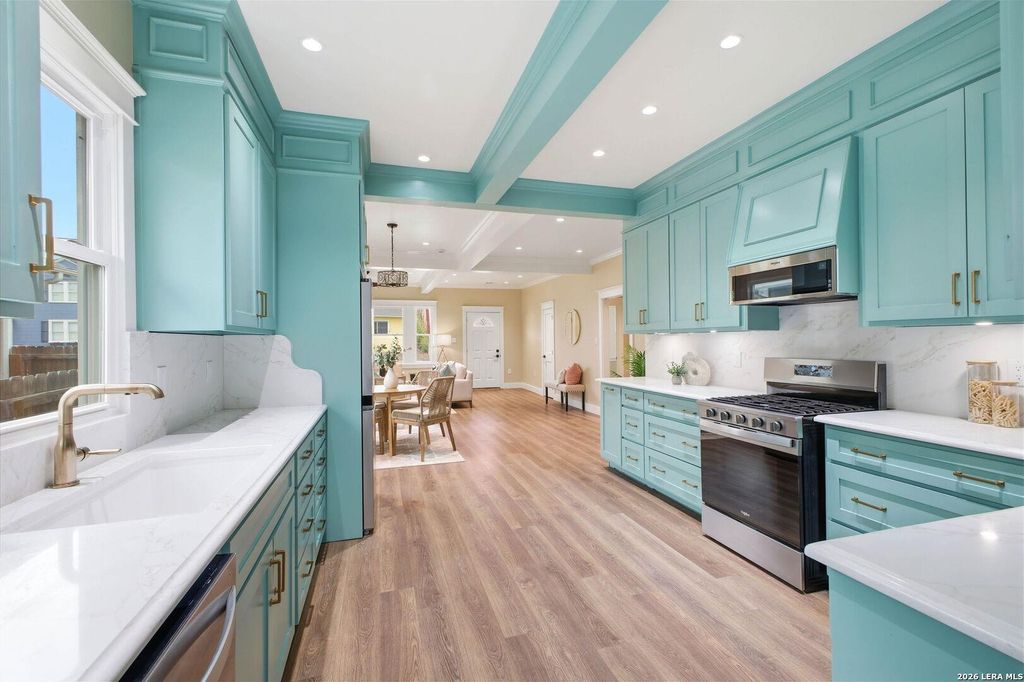 In the heart of Tobin Hill Historic District, just steps from The Pearl and some of San Antonio's best dining, shopping, and culture. This one-of-a-kind 1925 charmer has been completely reimagined from the inside out, blending historic character with modern luxury through a comprehensive, high-end renovation. Offering 3 bedrooms and 2 beautifully appointed baths, the home has been professionally leveled with new concrete piers and features new framing, all-new electrical with service panel and wiring, new plumbing supply from the street with PEX throughout, new oversized HVAC with updated ductwork, new insulation including sound-deadening interior walls, energy-efficient Pella windows, and an integrated security system. It delivers the confidence of new construction within a timeless architectural setting, complete with historically appropriate columns, custom porch detailing, and new pavers. Inside, thoughtful design maximizes every inch. The show-stopping kitchen showcases custom Tif