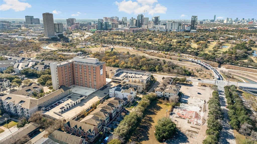 Contemporary elegance meets urban convenience in this stunning 4BD/4.5BA, 4-story residence on a private street in the heart of the Medical Center/Museum District. Bask in natural light through oversized double-pane windows, beneath designer lighting and sleek hardwood floors. The open-concept island kitchen stuns with white wood cabinetry and quartz counters. Enjoy seamless indoor-outdoor flow with a 2nd-floor balcony and a 4th-floor game room that opens to an oversized rooftop terrace—complete with trellis, custom shades, and breathtaking Downtown views! Smartly equipped with a stair lift for elder access, recessed lighting in all bathrooms, prewired for a backup generator, and no HOA dues. Walk to Hermann Park and experience the best of city living with quiet luxury. Priced right and move-in ready, this is a rare opportunity that will not last—schedule your private tour today and experience elevated city living at its finest.