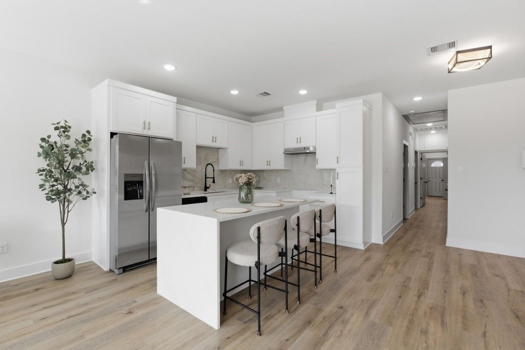 This uniquely designed duplex stands out with gold and black fixtures, a striking living room accent wall, and a waterfall kitchen island that adds an upscale touch. Each unit features 3 bedrooms and 2 baths with open-concept living, abundant natural light, and finishes that attract today’s renters and buyers. Designed with both lifestyle and investment in mind, this property delivers strong rental appeal and long-term value. Ideally located with Downtown and parks like Discovery Green just 12 minutes away, and NRG Stadium only 20 minutes from the property, residents enjoy quick access to Houston’s top employment centers, dining, entertainment, and recreation. With close proximity to major freeways, the Medical Center, East River, and Hobby Airport, this property offers both connectivity and convenience. This is an exceptional investment opportunity you won’t want to miss — whether you’re expanding your portfolio or securing a stylish income-producing property.