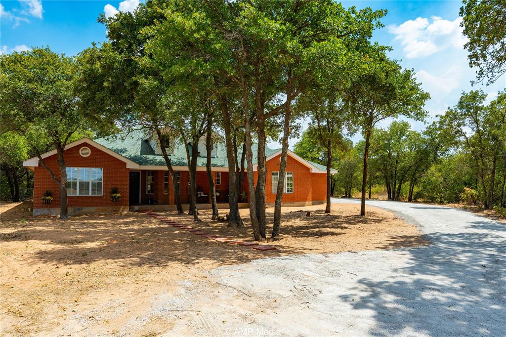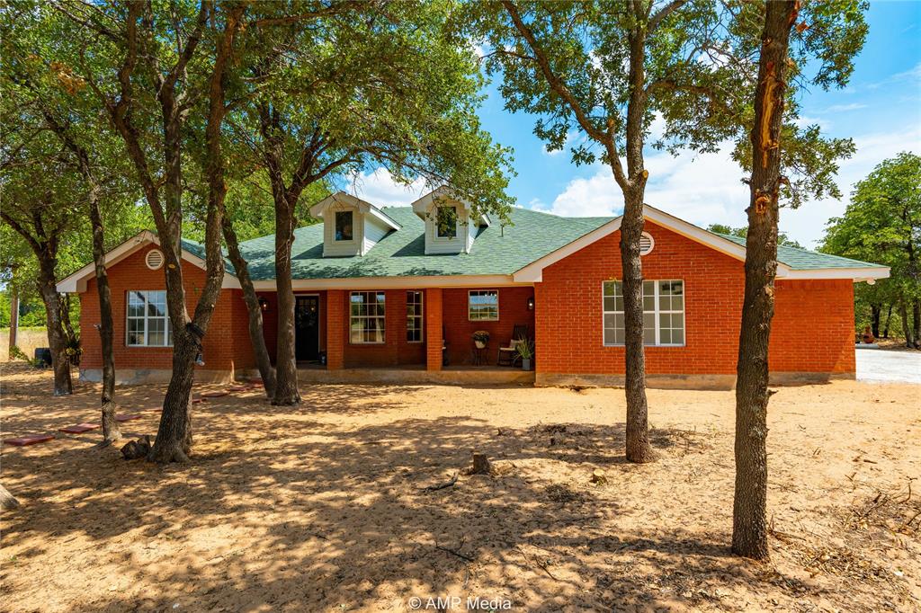 Welcome to this stunning brick home, nestled amidst a 5-acre oak grove at the end of a private drive. Experience tranquil country nights while remaining conveniently close to Abilene, just 22 miles away. Upon entering, you'll be greeted by the lifted ceiling in the great room and the impressive waterfall granite countertops in the kitchen, featuring brand-new stainless steel appliances. The split floor plan offers a secluded master suite, with a large bath, complete with a garden tub and adorned with custom tile and gold-accented hardware. This three-bedroom also includes a rustic home office with brick walls and cedar-trimmed windows showing a beautiful view of the oak grove. With sophisticated touches of granite and marble, custom woodwork, plenty of built-ins, and ample storage, this home truly checks all the boxes! The exterior features a fenced backyard, various oak trees and pathways perfect for hiking. Call today to enjoy peaceful country living on your own piece of Texas!