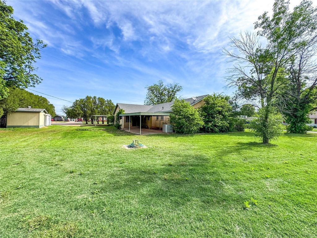 Nestled on a spacious corner lot, this oversized ranch-style home offers comfort, functionality, and room to grow. Featuring three generously sized bedrooms and two full bathrooms, the layout is ideal for both everyday living and entertaining. The heart of the home is a stunning catering-style kitchen, complete with an impressive center island, abundant cabinetry, and ample workspace—perfect for home chefs and large gatherings. Enjoy the convenience of a large laundry room, two inviting living areas, and a two-car carport. Step outside to a sprawling covered patio, ideal for outdoor entertaining or relaxing in the shade of mature trees. Additional highlights include a private water well and beautifully landscaped surroundings that offer both charm and privacy.