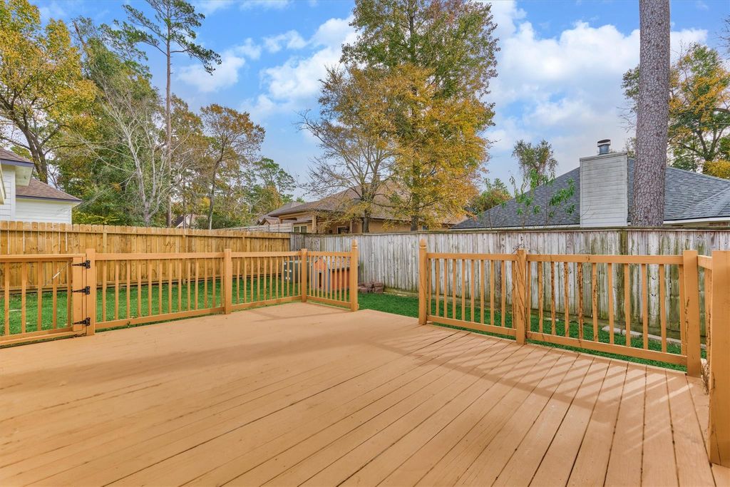 Welcome home to this clean, bright property in the highly sought-after Walden subdivision. Filled with natural light, the home features laminate wood flooring for easy maintenance and everyday living. The primary suite is downstairs with an updated bathroom offering a seamless walk-in shower and rain head fixture. Upstairs are three additional bedrooms, ideal for family, guests, or flexible use. The renovated kitchen is open and bright with abundant cabinet storage and connects to the breakfast room, highlighted by a large picture window. Outside, enjoy an oversized patio deck and fully fenced backyard, where towering trees provide privacy and shade for relaxing or entertaining. Walden amenities are exceptional and include a half-Olympic sized pool, kids pools, athletic center, trails, playgrounds, dog park, marina, pickleball courts, and more. Located in the highly acclaimed Montgomery ISD, this home offers comfort, convenience, and an outstanding lake community lifestyle.