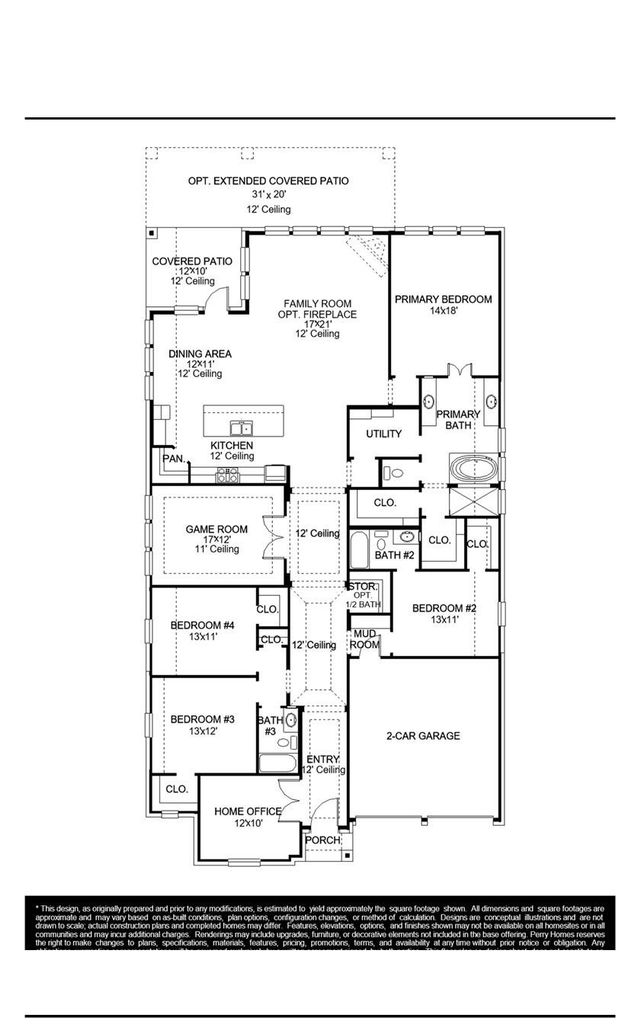 The front porch invites you into an extended entryway. French doors open into the private home office located at the front of the home. As you move through the main hallway, you'll be greeted by 12-foot coffered ceilings. The secondary bedrooms, complete with walk-in closets and bathrooms, frame the entrance. French doors open into the game room, boasting three large windows. As you continue, you'll be welcomed by the spacious kitchen, featuring a corner pantry and an island with built-in seating. Adjacent to the kitchen, the dining area connects seamlessly to the family room, adorned with a wall of windows. The primary bedroom offers ample natural light. Double doors open into the primary bathroom, complete with dual vanities, a garden tub, a separate glass-enclosed shower, two walk-in closets, and access to the utility room. Covered backyard patio. Completing the home is an extra storage closet and mud room, placed just off the two-car garage.