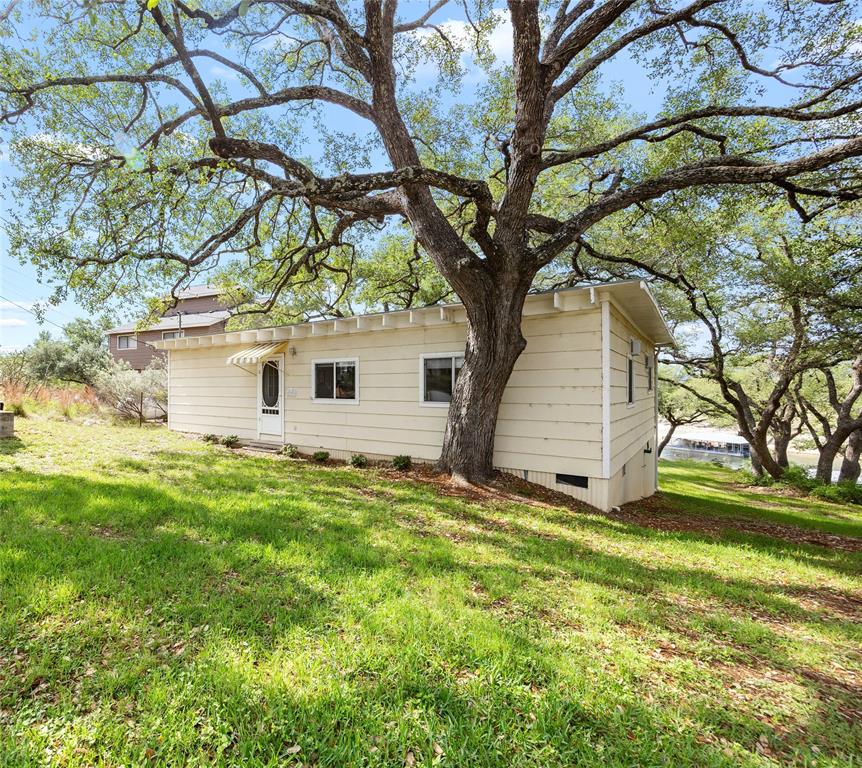 Beautiful waterfront lot with cabin on Lake Travis set in Edgewater Beach between The Coves and The Reserve in highly acclaimed Lake Travis ISD. Almost an acre lot offers plenty of room to build your dream home or just enjoy the weekend cabin. Entire lot is below the 723’ elevation, so new construction would be elevated. Property sold as-is. Cabin is a habitable 2-bedroom, 1.5-bath with full kitchen, dining/living and deck. Water delivery to 2500-gallon tank for use in home, lake pump for irrigation of land, wall AC units, and septic. Dual boat slip conveys with the sale. Neighborhood waterfront park and boat ramp on open water is at the end of the street, a short walk from property. Subdivision allows for short-term rentals (STR). Structure has not flooded since current owner purchased.