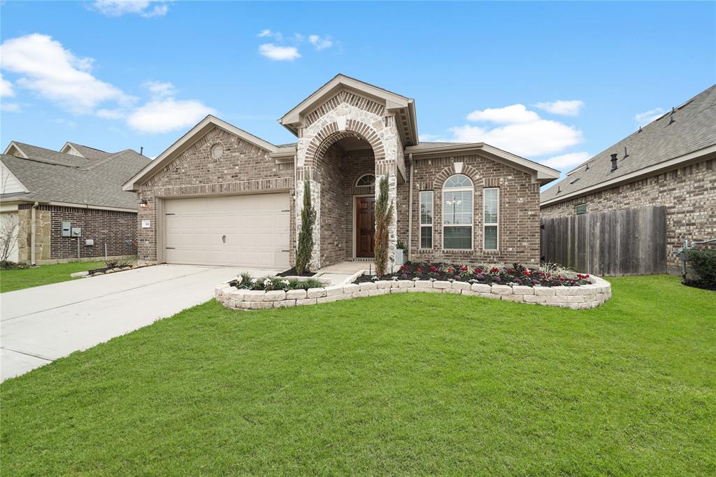 Welcome Home! This IMMACULATELY maintained home in Delany Cove is ready for YOU! This beauty hosts 4 bedrooms 2 baths plus an office! As you pull up you will notice the gorgeous brick and stone exterior with beautiful flower bed! Upon entering the home you be greeted by the home office equipped with French doors and large windows! Make your way down the entry hall on the exquisite wood look tile flooring into the kitchen/living room combo space that will host those large gatherings with ease! Retreat after a long day to your huge primary bedroom with soaking tub and walk in closet! The secondary bedrooms are spacious and very well maintained. Have a green thumb? This backyard is perfect for you! Relax on your covered patio and do your gardening in your cozy back yard oasis. Delany Cove is conveniently located between Houston and Galveston and right off of Interstate 45 for a quick commute. This area is booming with restaurants, shopping, and businesses! Schedule your showing today!