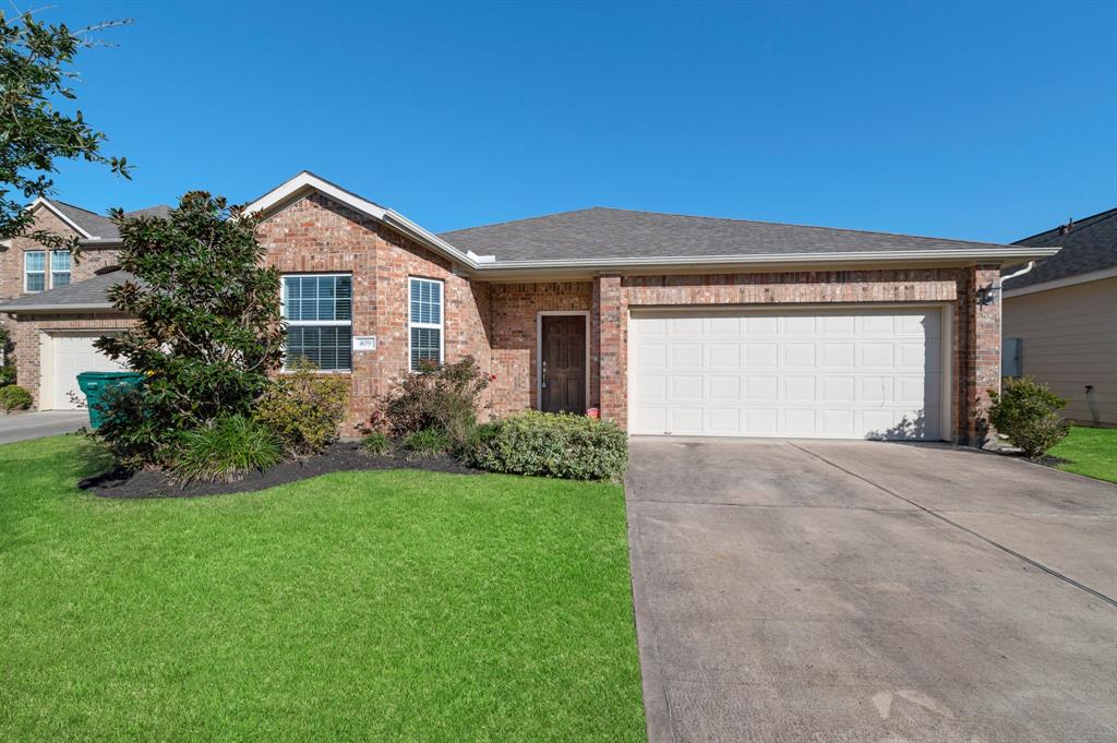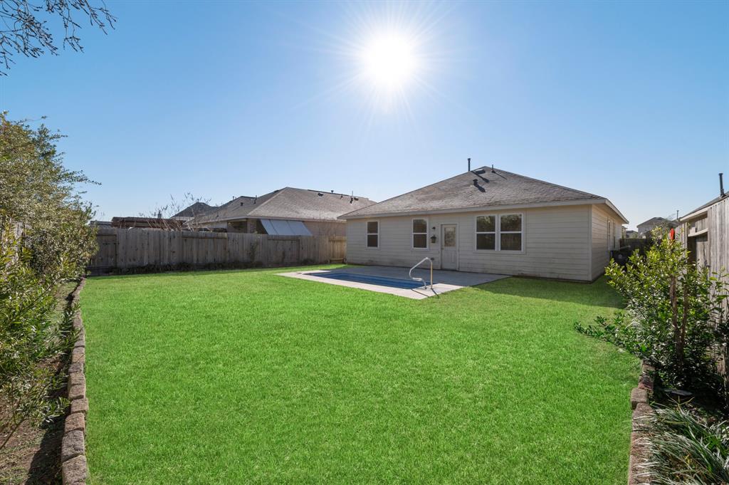 WELCOME HOME! This well maintained beauty in the heart of Delany Cove is ready for YOU! This floorplan contains 3 generously sized rooms including a large primary bedroom with a gorgeous en-suite bathroom and spacious walk-in closet. The dining room/living room/kitchen layout can be configured to meet your needs with many different options. Retreat to your landscaped back yard with extended patio and relax year round in your own HEATED SOAKING POOL. This home was just COMPLETELY repainted and comes with brand new carpet through out! Enjoy this ideal location right off of 45 with a quick drive to both Houston and Galveston and anything in between. You will be just minutes from Tanger Outlets, Lago Mar Lagoon, Bucees, and the beach! Schedule your showing today!