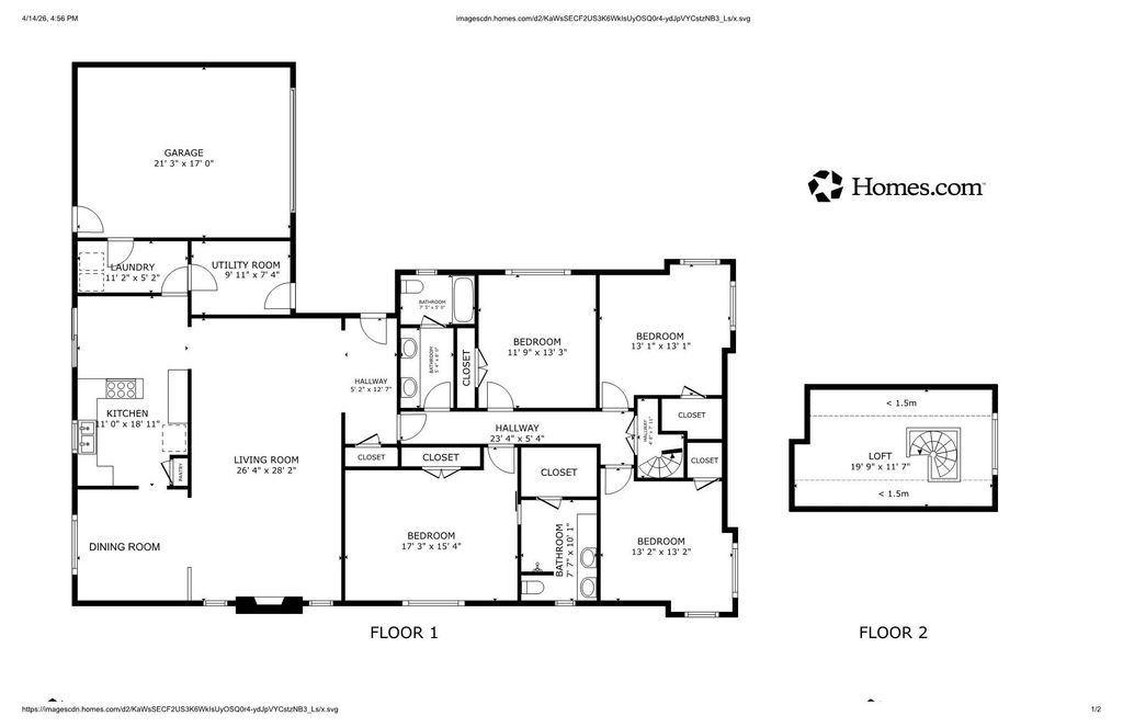 1 Living Area, Formal Dining, Utility Room in House