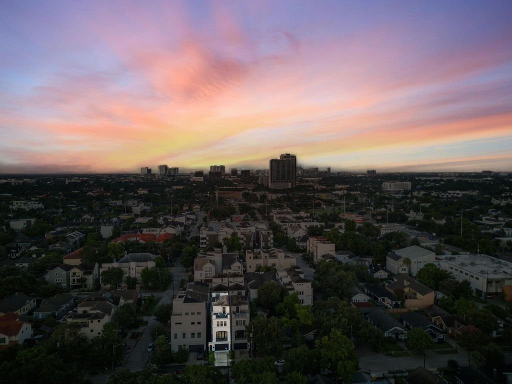 Wake up to unobstructed Downtown skyline views in this four-story, elevator-capable Charles Martin custom residence. Built in 2014, this contemporary home showcases high-end finishes & a seamless layout for daily routines or sophisticated entertaining. Soaring ceilings & oversized windows illuminate the second-floor living space. Rich hardwoods lead directly into a chef-inspired kitchen equipped w/ sleek marble counters, custom cabinetry & Thermador Pro appliances. Unwind in the expansive primary suite & a spa-like bath w/ an exceptionally large walk-in closet. Step outside to your own secluded urban retreat, the fully fenced backyard highlights a tranquil modern cocktail pool ideal for cooling off or hosting guests. Enjoy a premium, lock-and-leave lifestyle seamlessly connected to Montrose’s top-tier dining, retail & cultural landmarks. Experience an effortless commute to the Medical Center & Downtown from one of Houston's most vibrant hubs.