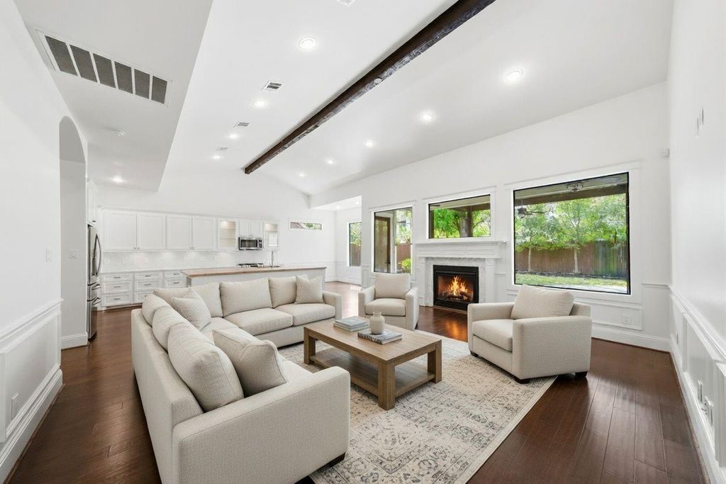 Experience refined luxury in this 2014-built estate in Spring Branch, where sophisticated design meets high-end functionality. This 2-story residence features four bedrooms & 3.5 bathrooms w/ sought-after first-floor living & a whole home generator. Inside, the freshly painted interior showcases rich hardwood floors, stately wood beams & a fireplace that anchors the open living space. The remodeled kitchen is a chef’s dream w/ quartz countertops, recessed lighting, a gas cooktop & stainless steel appliances surrounding a large breakfast bar. The primary suite on the first floor provides a tranquil escape w/ an expansive walk-in closet & a private ensuite bath. This luxury bathroom includes a dual sink vanity & a glass-enclosed walk-in shower for a spa-like feel. Step outside to a private fenced yard featuring a pergola & a hot tub for year-round enjoyment. A 2-car garage adds convenience. Located near 610 & I-10, this home offers a quick commute to the Galleria & Memorial Park.