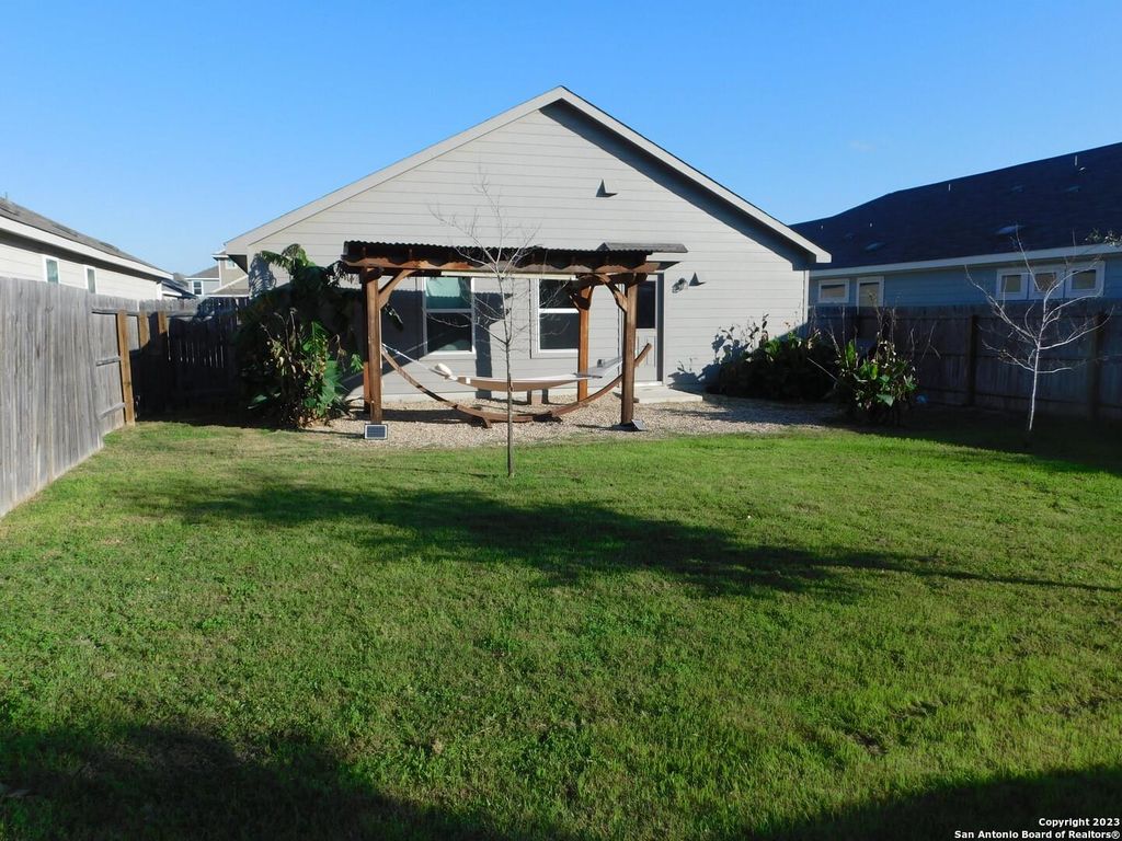 Welcome to this charming residence offering 3 bedrooms, 2 baths, and a fantastic game room, providing ample space for comfort and entertainment. The primary suite includes a full bath for your convenience, ensuring relaxation at its finest. Step into your own backyard paradise - an ideal space for both entertainment and relaxation. Enjoy the pergola adorned with a hammock, providing a serene spot for unwinding after a long day. Whether it's hosting gatherings or finding tranquility, this backyard offers the prefect place for relaxing. Great location, just minutes from the back gate of Randolph AFB, near Fort Sam, lots of dining and shopping!