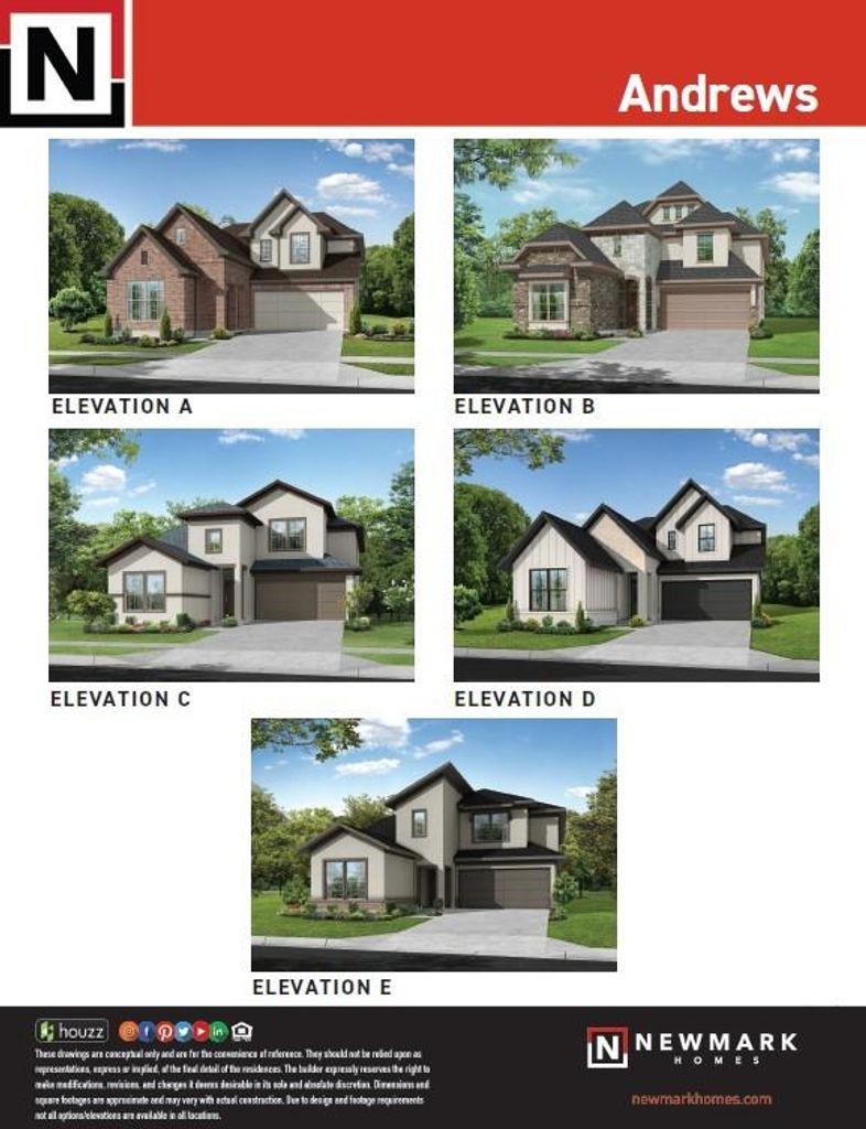 The ANDREWS PLAN BY NEWMARK HOMES boasts soaring high ceilings in the family room, meeting point-vaulted windows that overlook the spacious covered patio. With 5 beds (2 down), 4 baths, a huge gameroom, dining room, and 2 car garage, this home offers ample space and versatility. Complete with a full sprinkler system and full gutters.